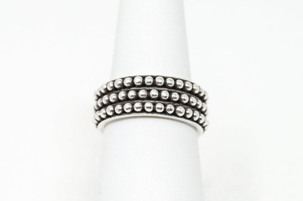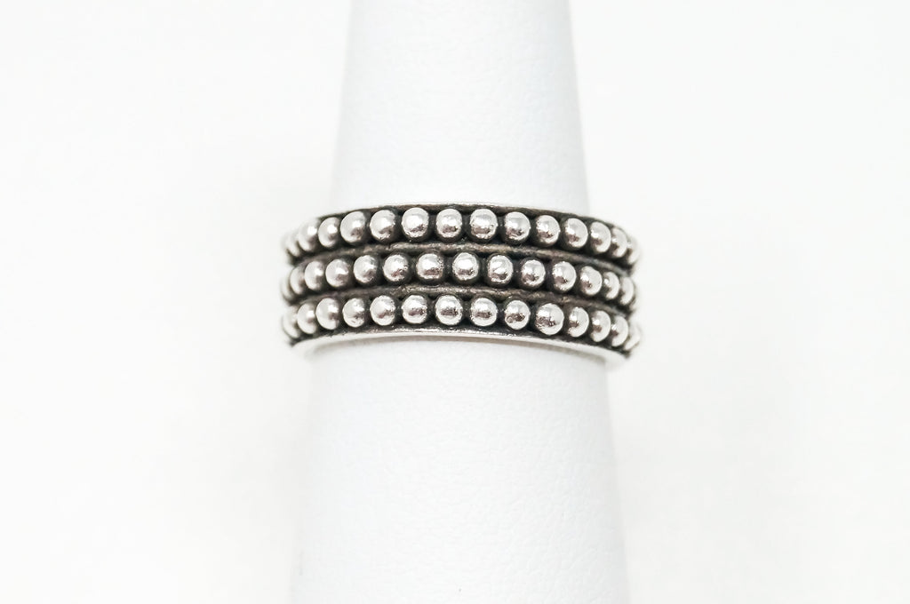 Vintage Beaded Design Sterling Silver Band Ring - Sz 6 - 798886433