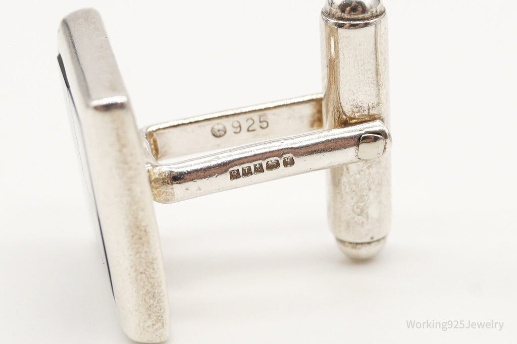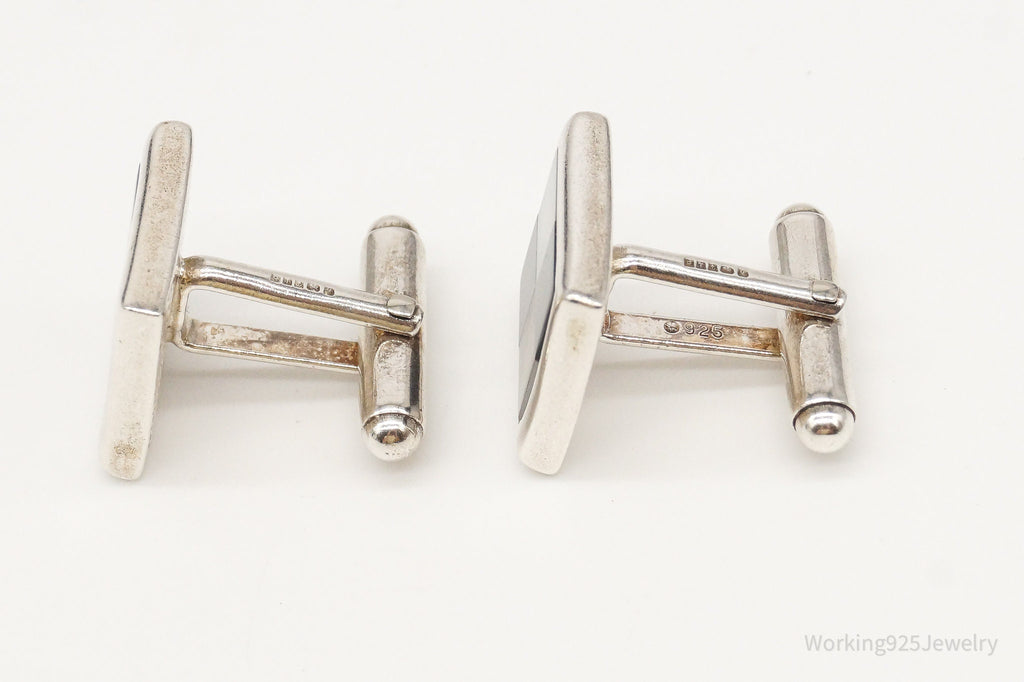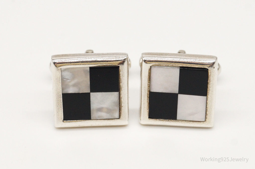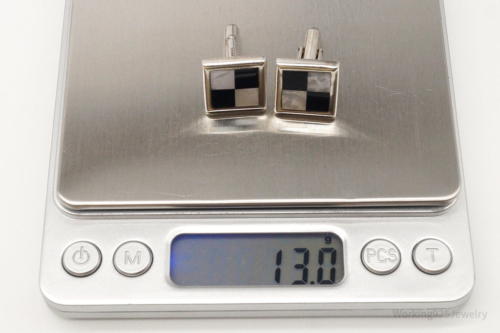 Vintage Birmingham Mother Of Pearl Black Onyx Sterling Silver Cufflinks