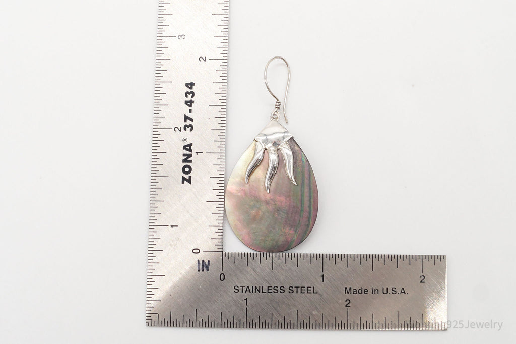 Vintage Black Mother Of Pearl Sterling Silver Earrings