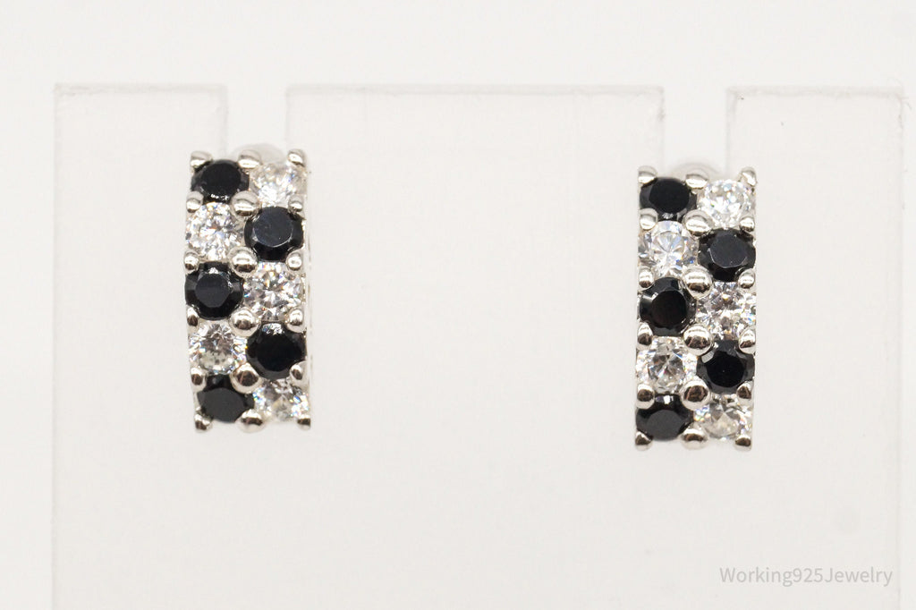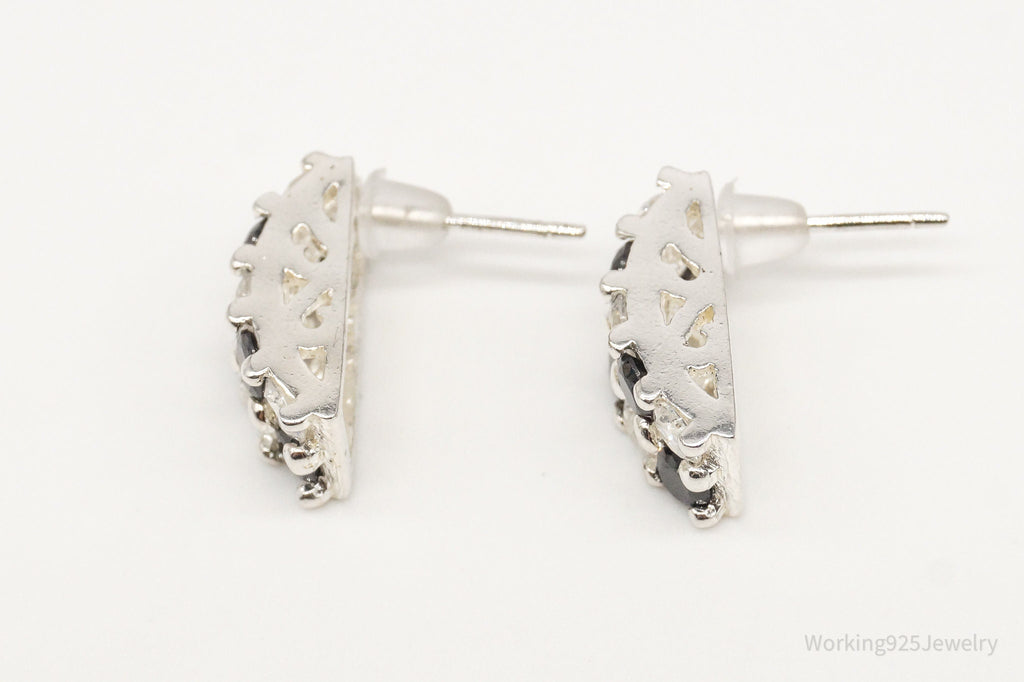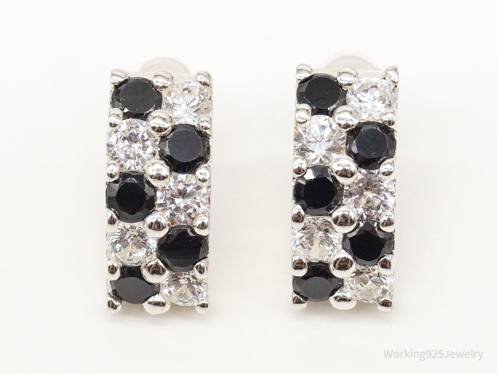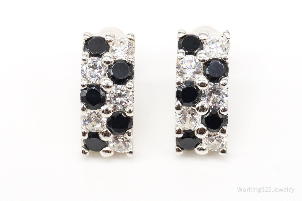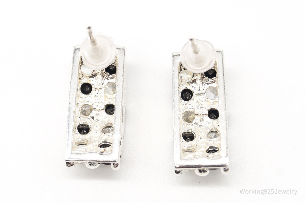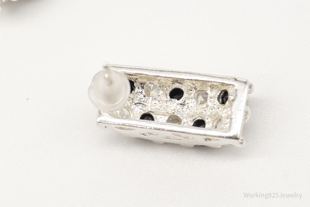 Vintage Black Onyx Cubic Zirconia Sterling Silver Earrings