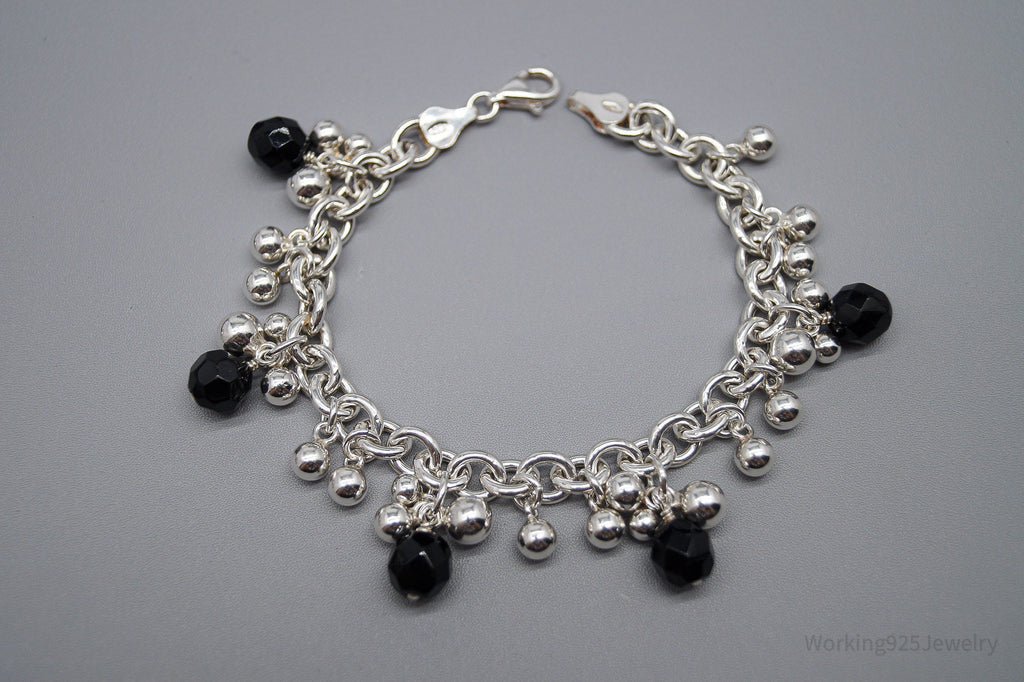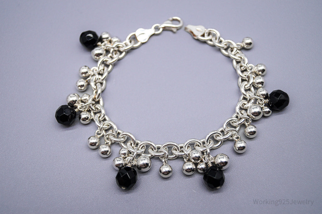 Vintage Black Onyx Sterling Silver Bracelet - 7 1/8"