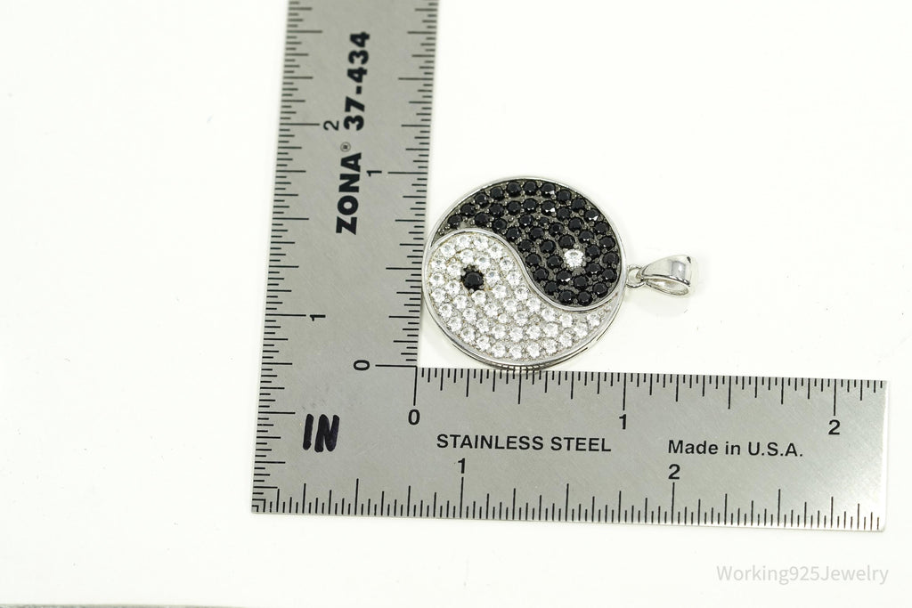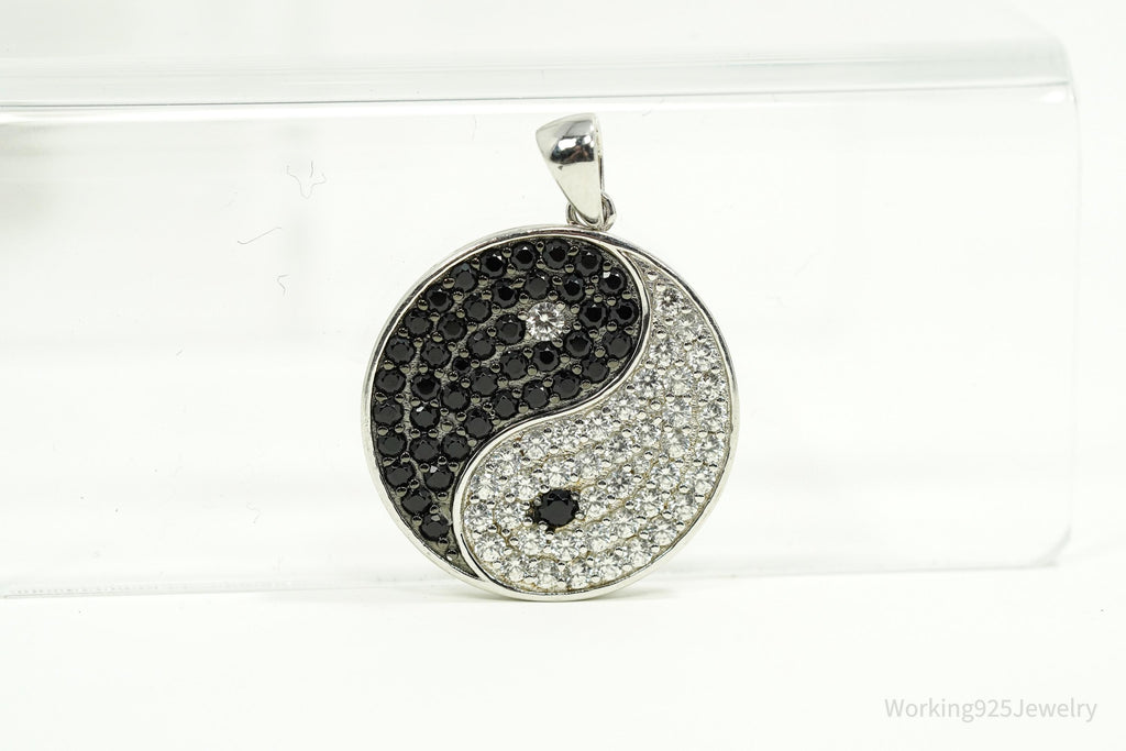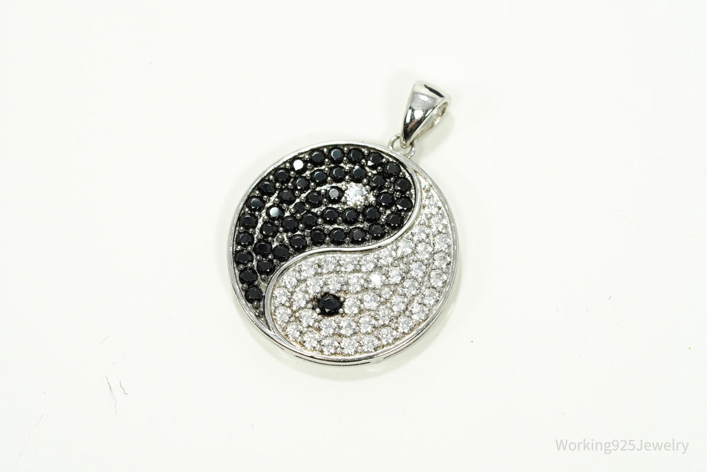 Vintage Black Spinel & White Topaz Yin Yang Sterling Silver Pendant