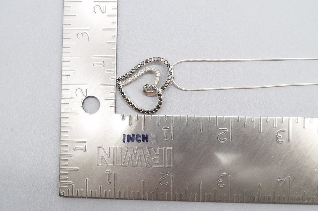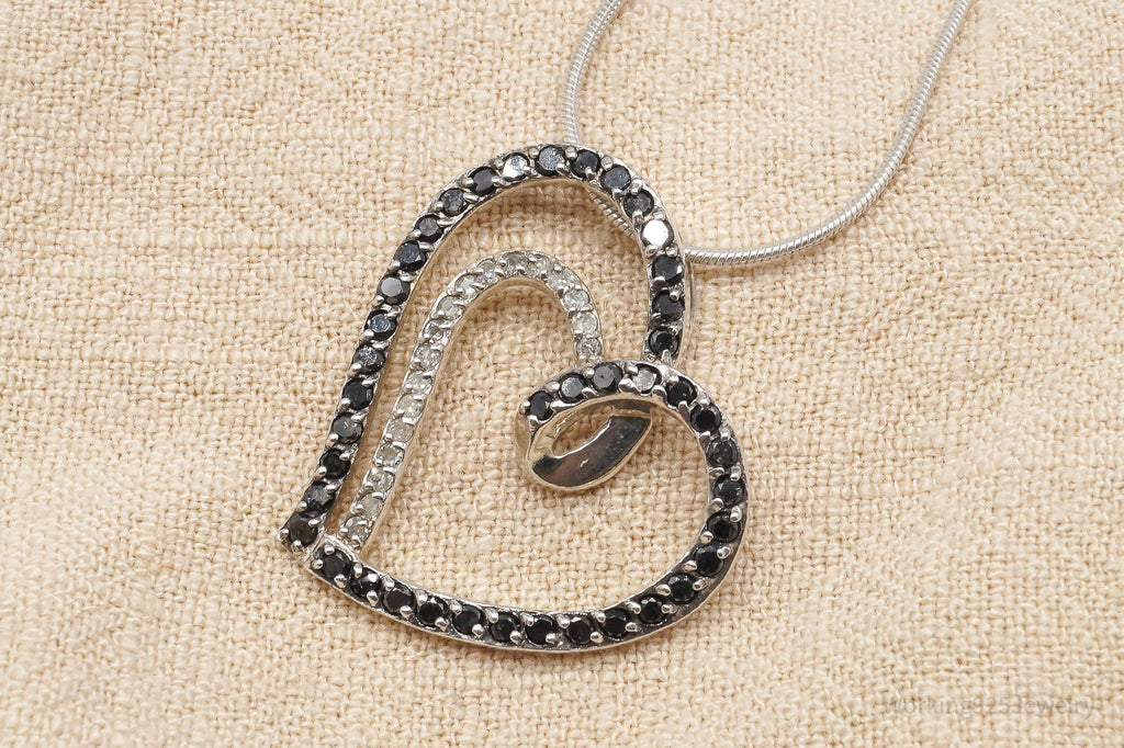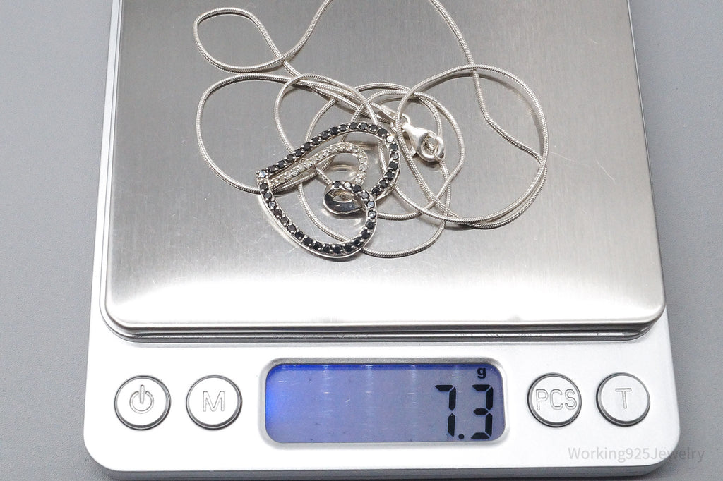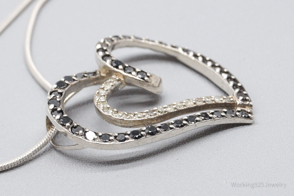 Vintage Black & White Diamond Heart Sterling Silver Necklace 24"
