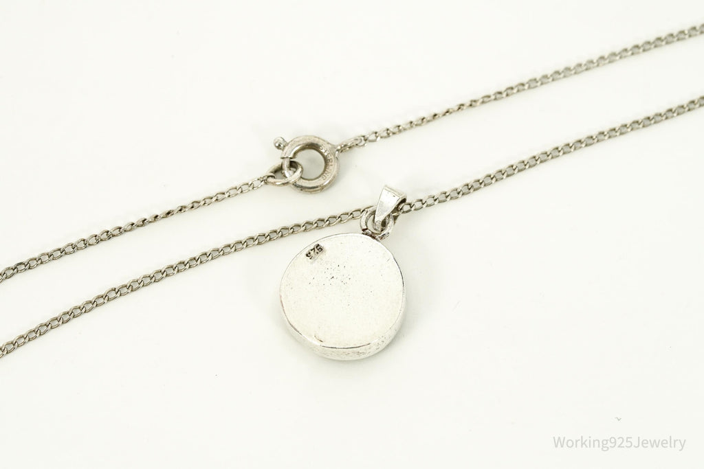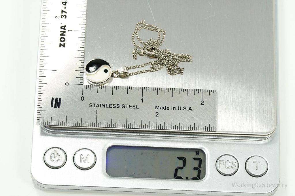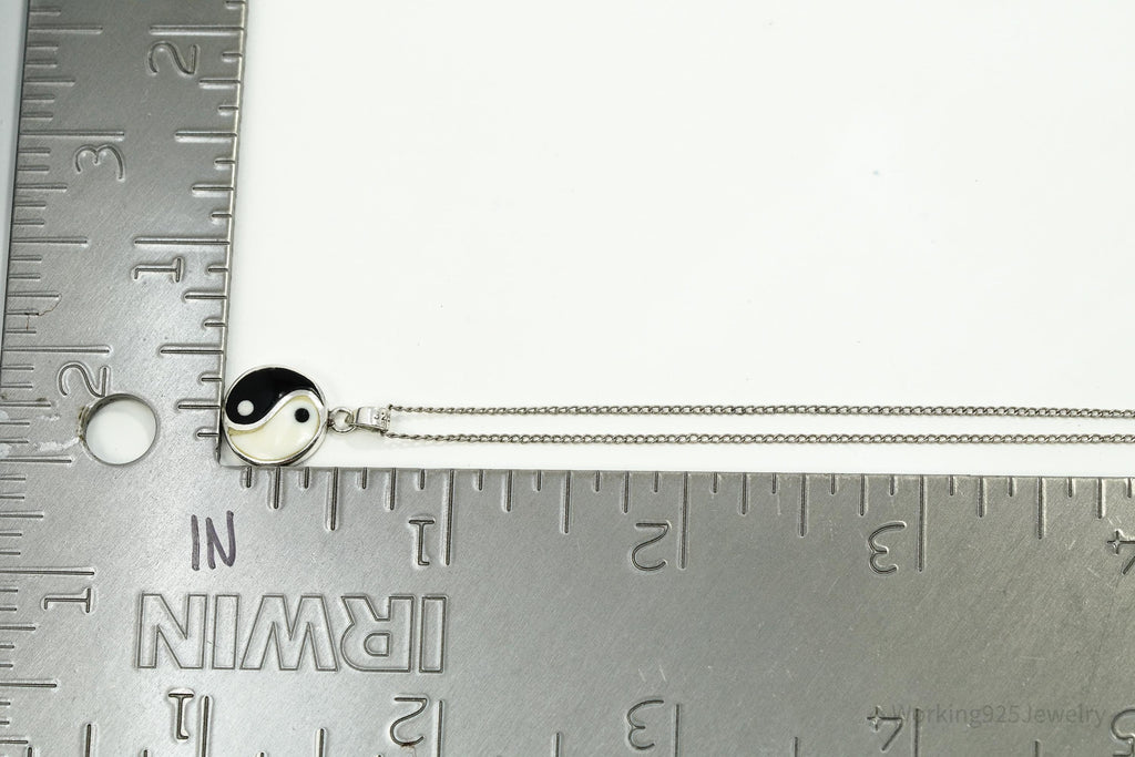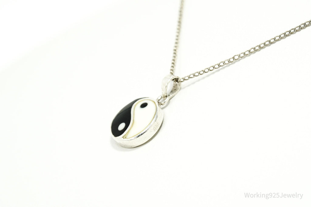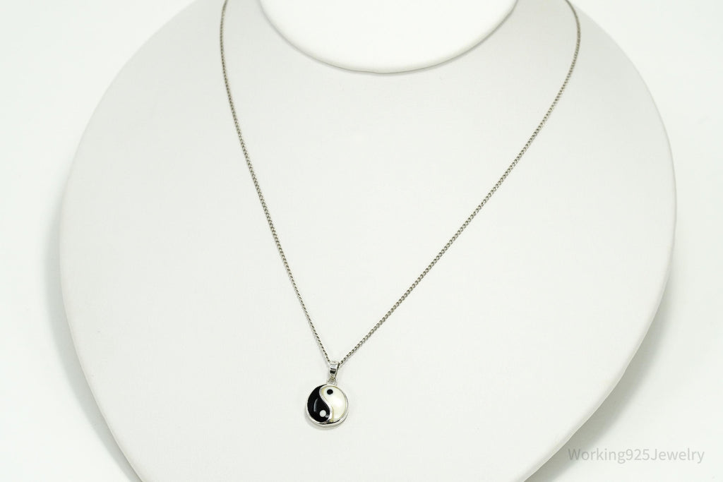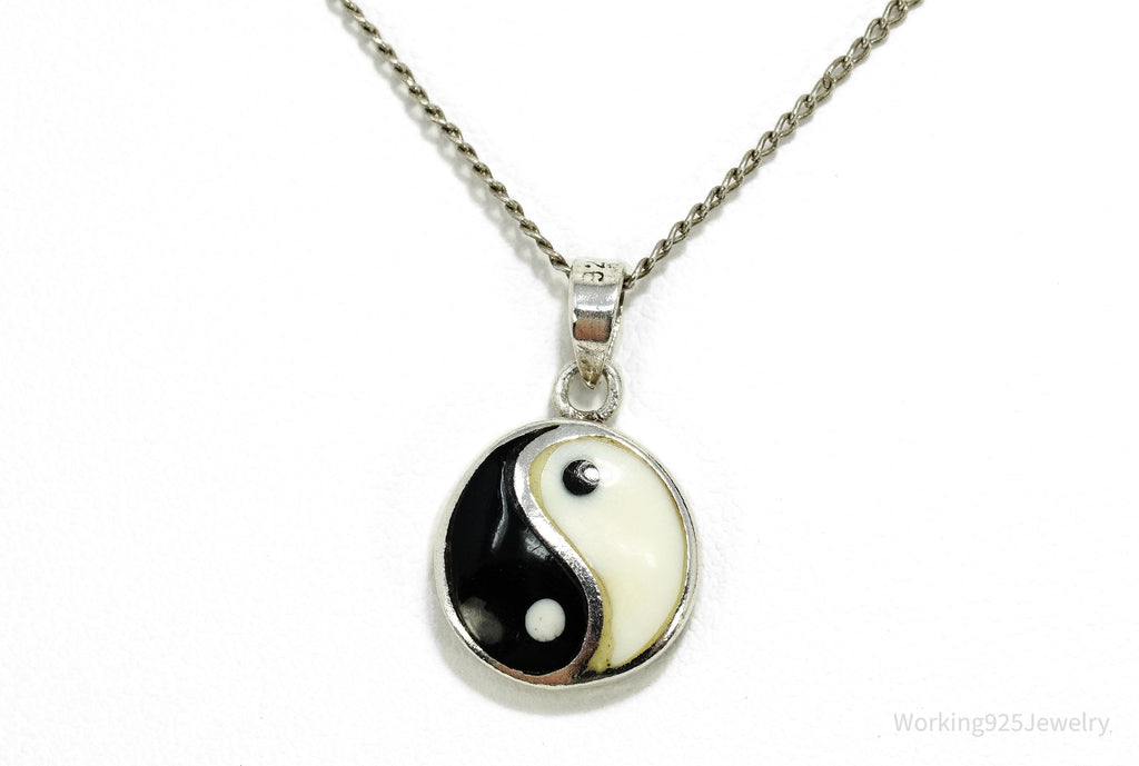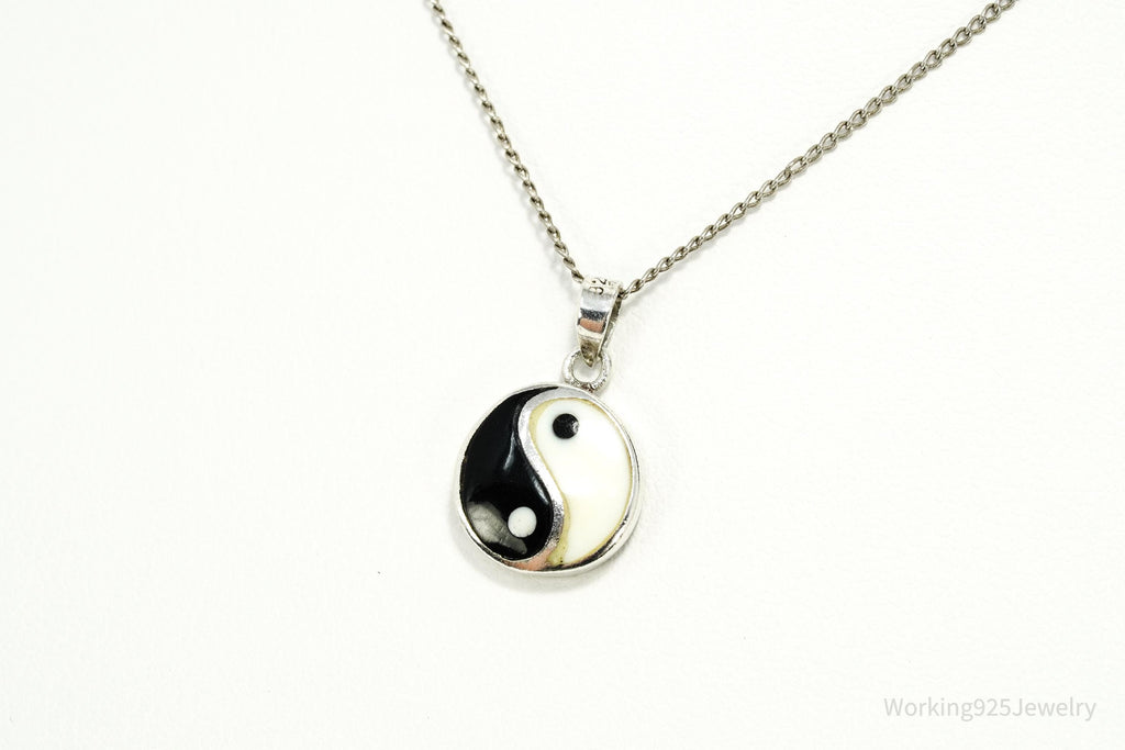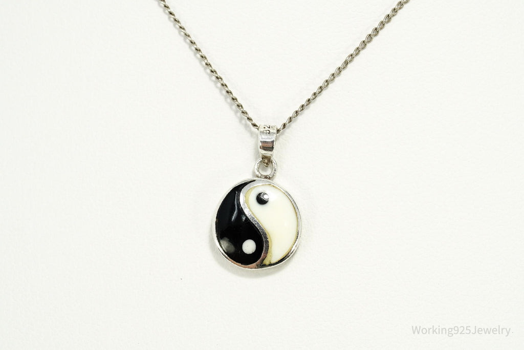 Vintage Black & White Onyx Inlay Yin Yang Sterling Silver Necklace 16"