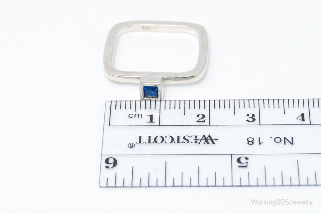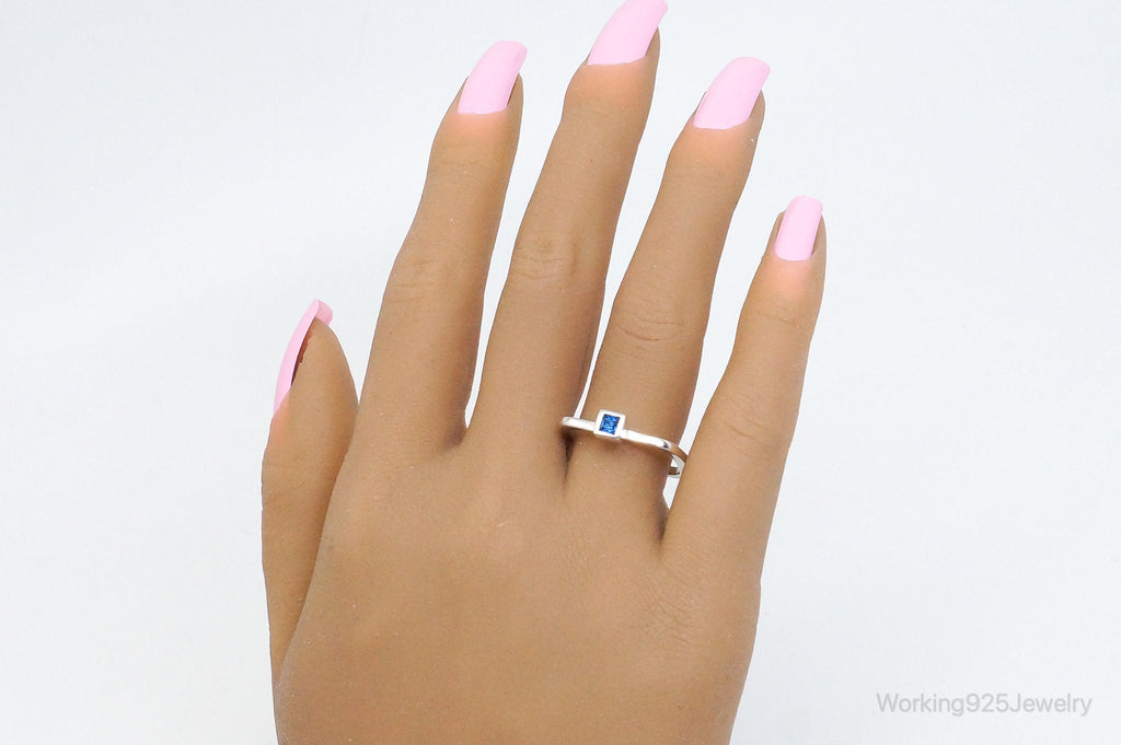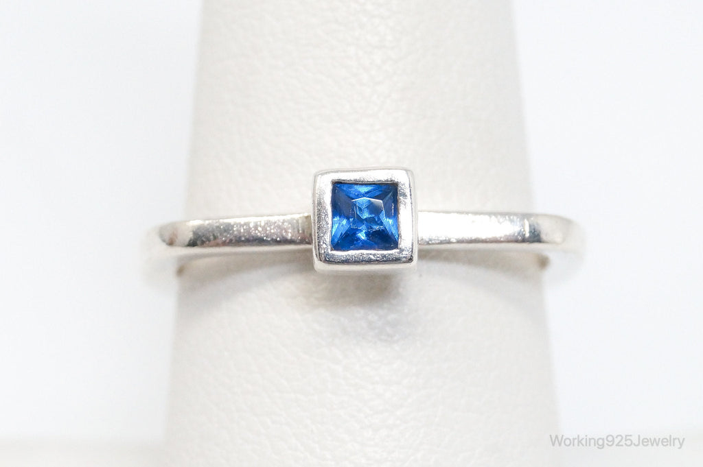 Vintage Blue Cubic Zirconia Sterling Silver Ring - SZ 7.75