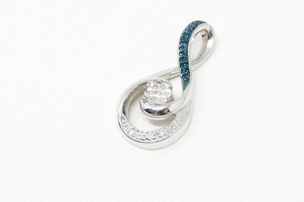 Vintage Blue Diamond Sterling Silver Necklace Pendant