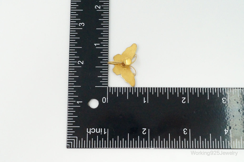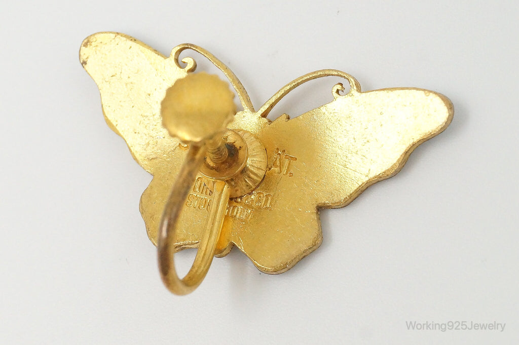 Vintage Blue Enamel Butterflies Gold Vermeil Silver Screw Back Earrings