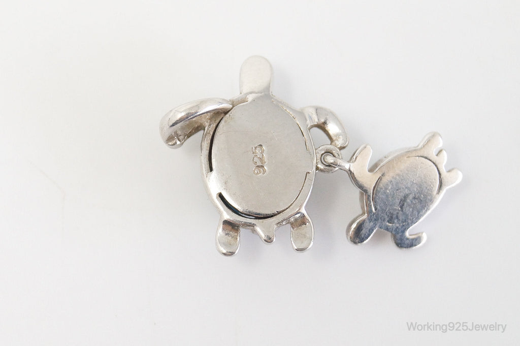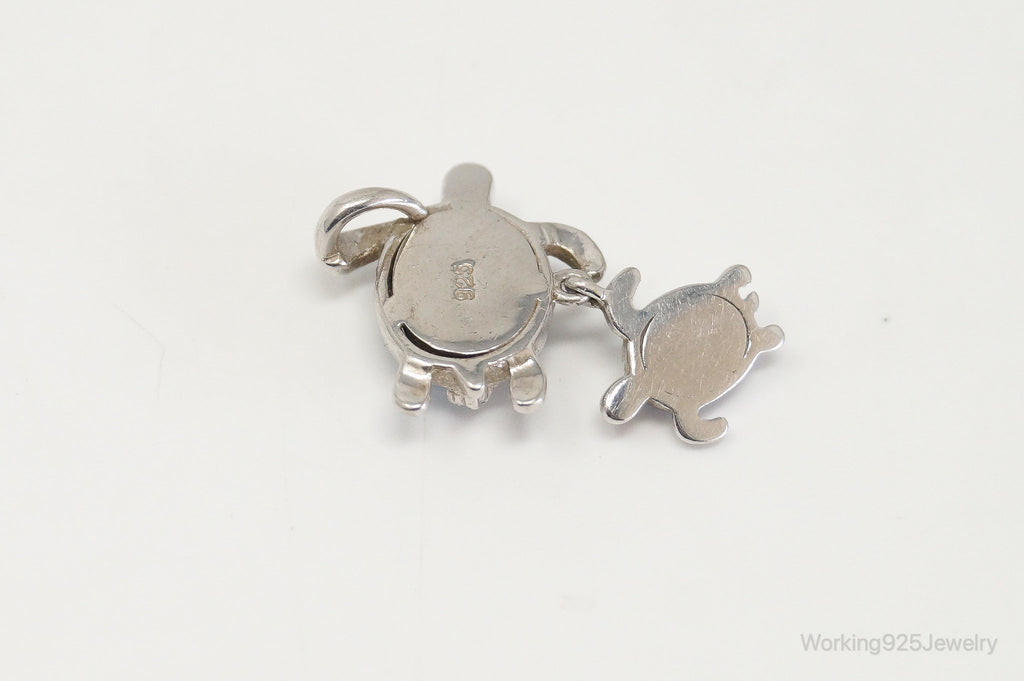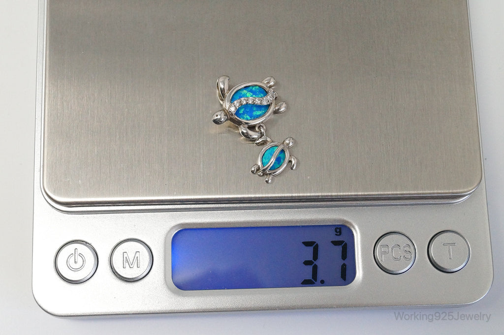 Vintage Blue Fire Opal Cubic Zirconia Sea Turtles Sterling Silver Pendant
