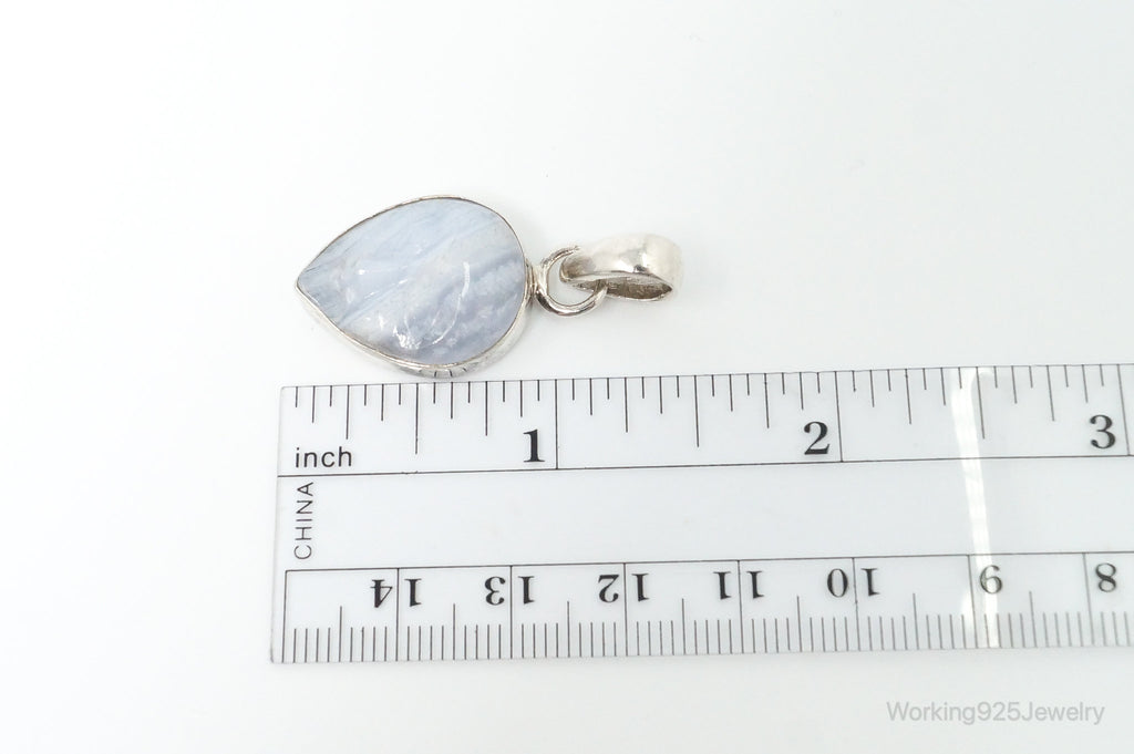 Vintage Blue Lace Agate Moon Face Sterling Silver Pendant