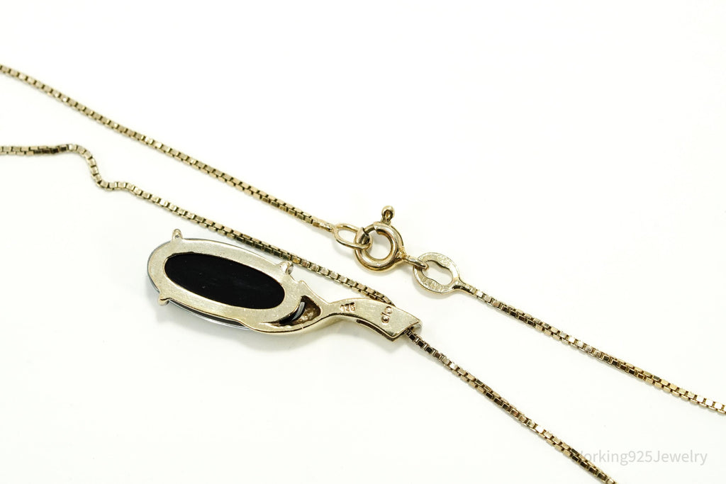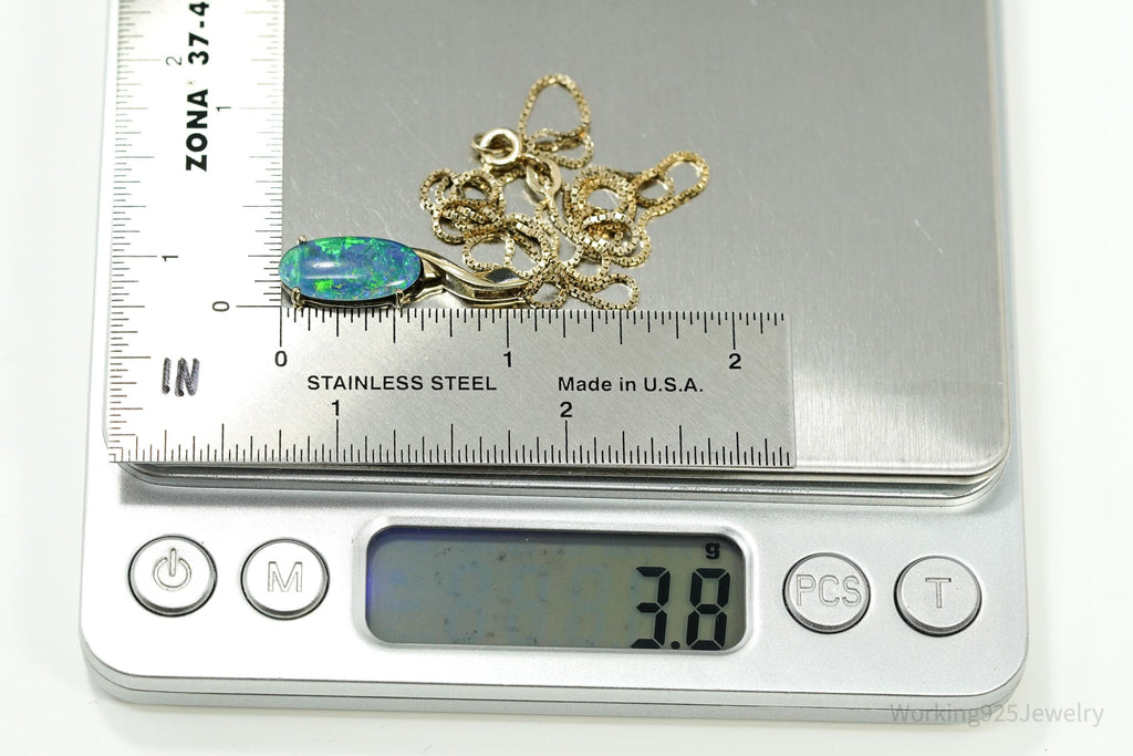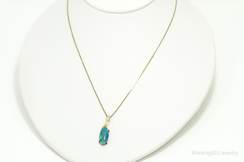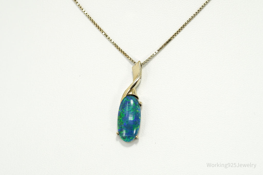 Vintage Blue Opal Triplet Gold Vermeil Sterling Silver Necklace 18"