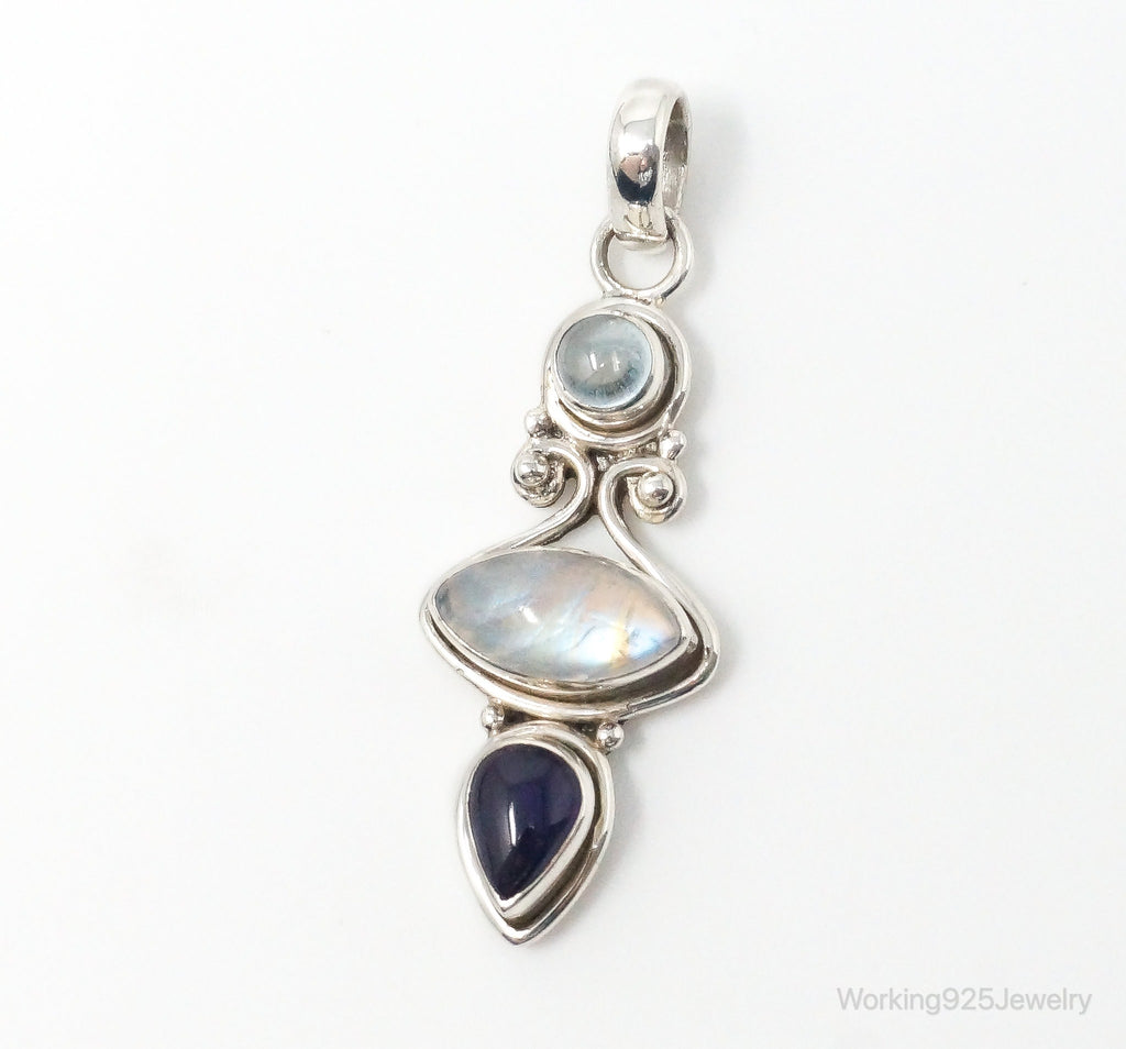 Vintage Blue Topaz Amethyst Moonstone Sterling Necklace Pendant