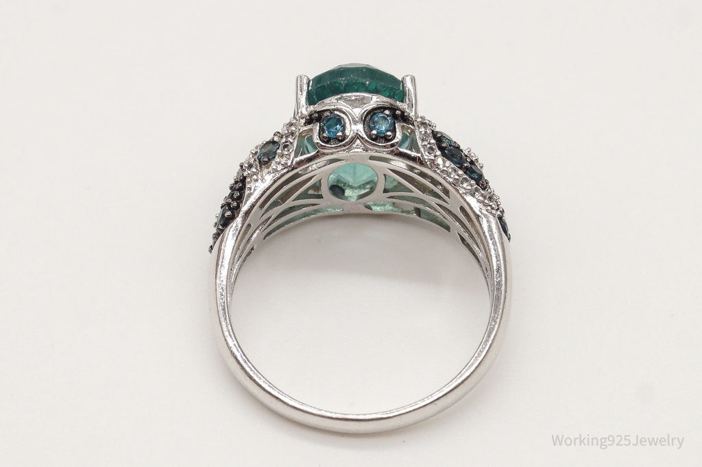 Vintage Blue Topaz Cubic Zirconia Sterling Silver Ring - SZ 10.75