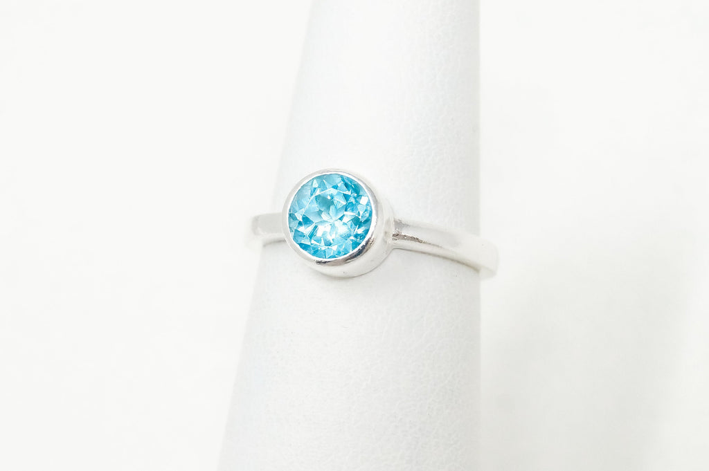Vintage Blue Topaz Gemstone Sterling Silver Ring - Sz 4.75 -783793436
