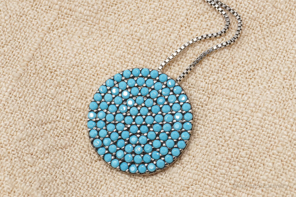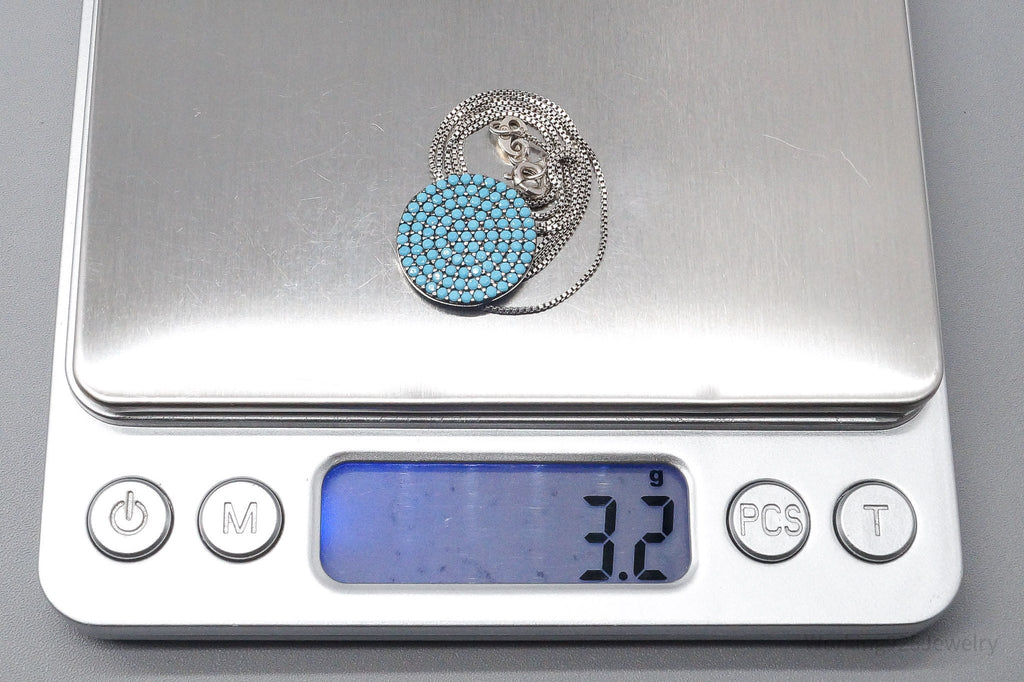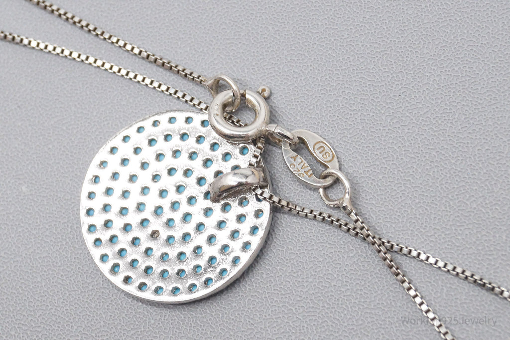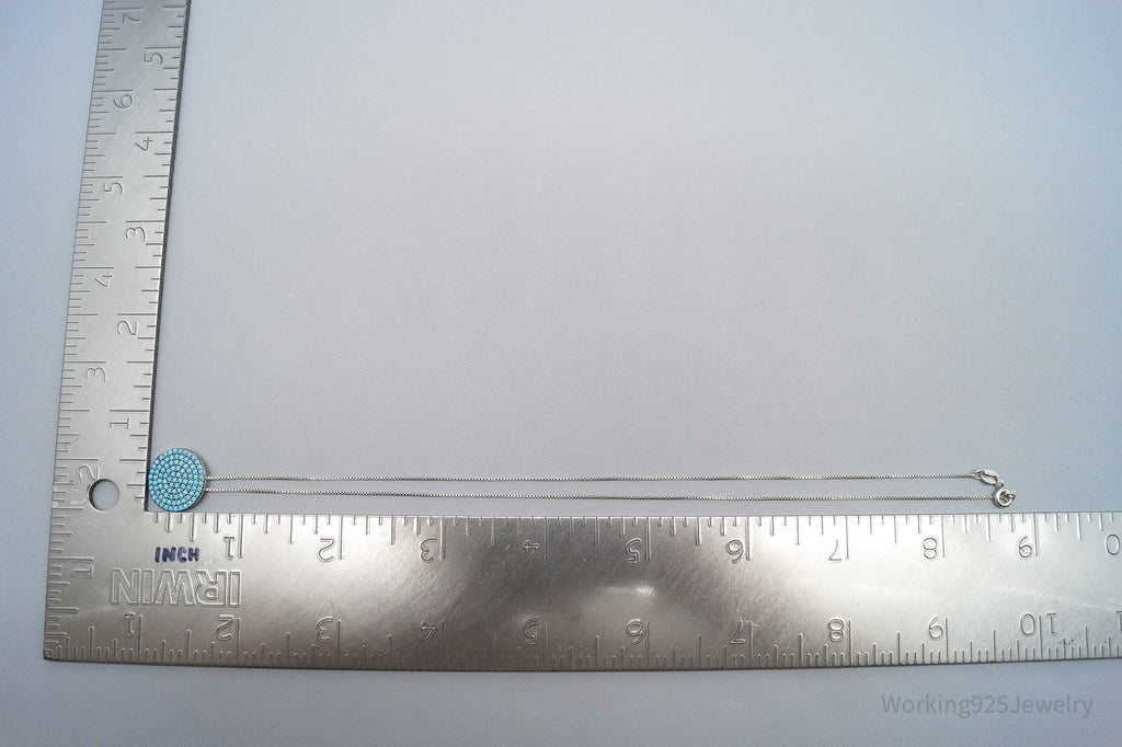 Vintage Blue Turquoise Pendant Sterling Silver Necklace 16"
