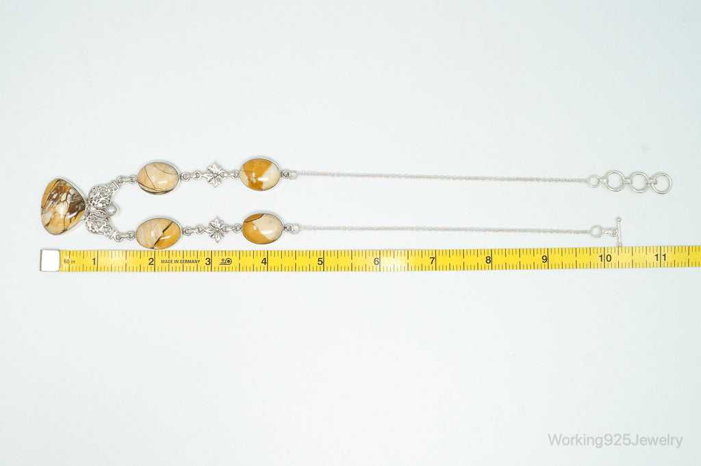Vintage Brecciated Mookaite Jasper Pearl Sterling Silver Necklace