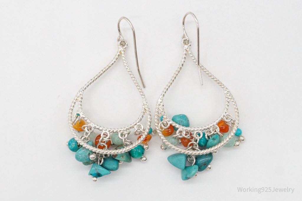 Vintage Carnelian Turquoise Chalcedony Beads Sterling Silver Earrings