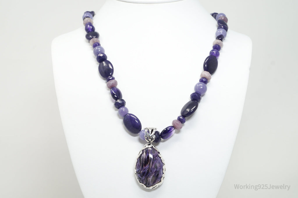 Vintage Carolyn Pollack Relios Charoite Bead Western Sterling Silver Necklace