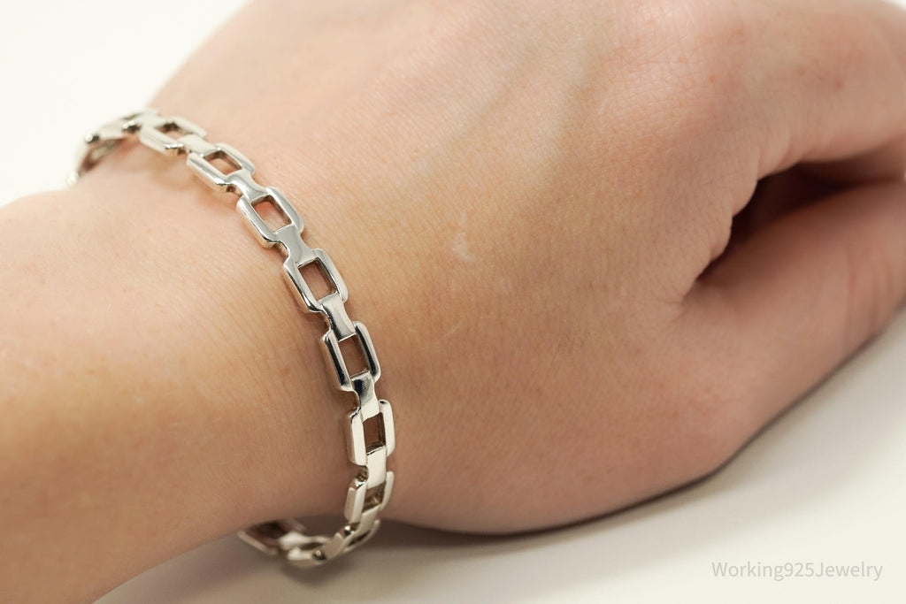 Vintage Chain Link Design Sterling Silver Bracelet - 7 5/16"