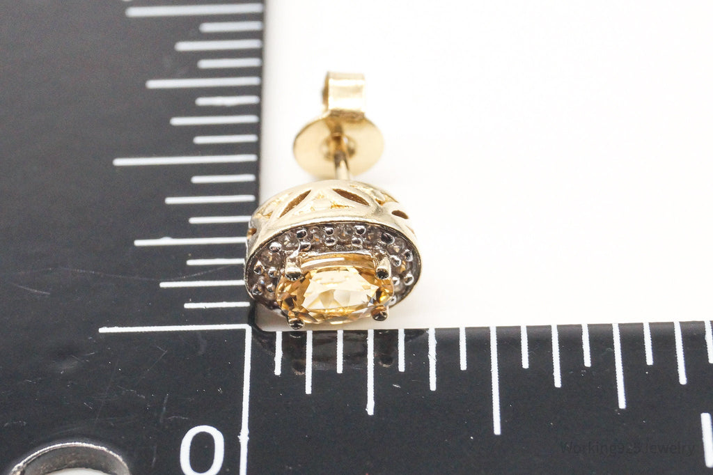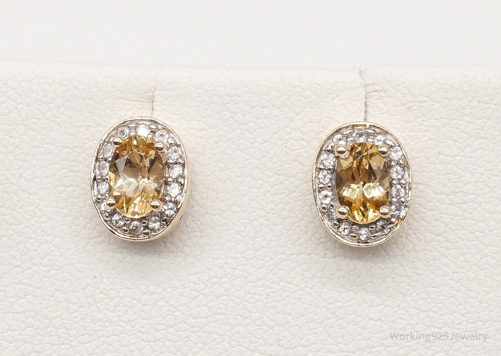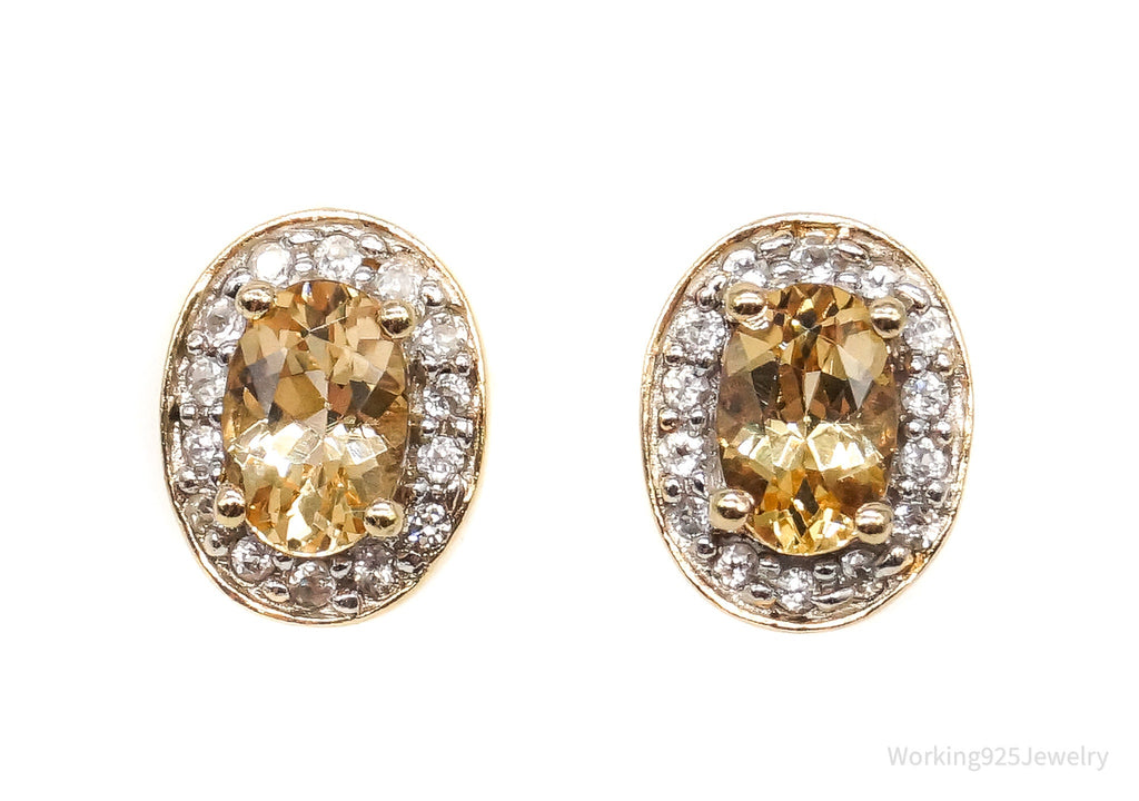 Vintage Citrine Cubic Zirconia Yellow Gold Sterling Silver Earrings