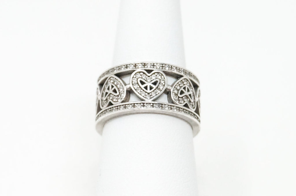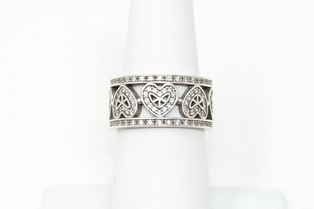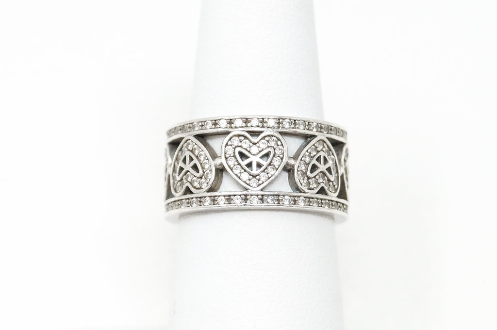 Vintage Cubic Zirconia Cut Out Heart Sterling Silver Ring - Sz 6.75 - 785008236