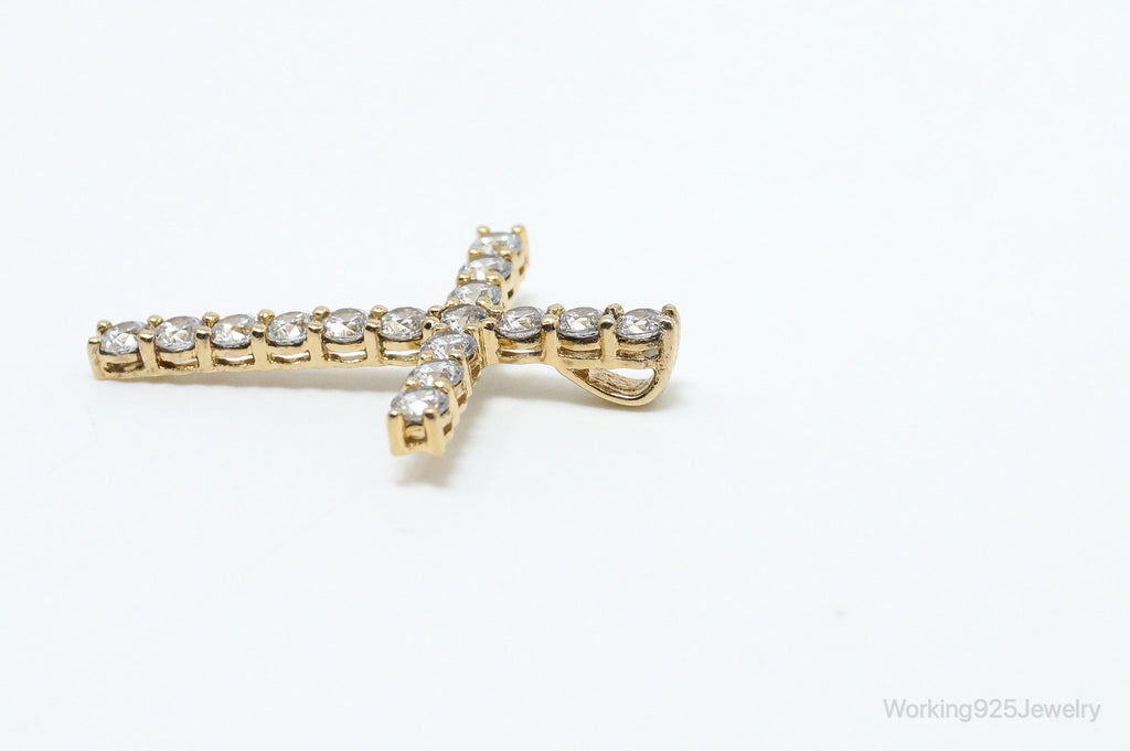 Vintage Cubic Zirconia Gold Vermeil Cross Sterling Silver Pendant