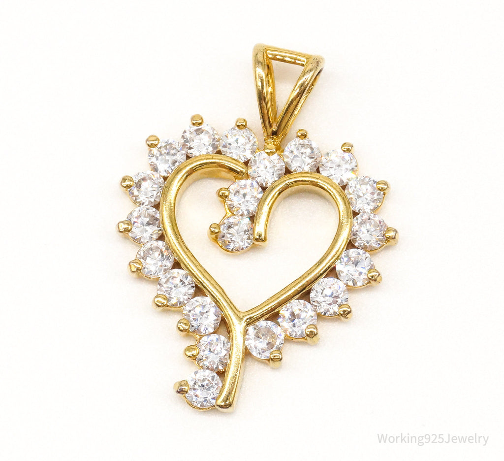 Vintage Cubic Zirconia Gold Vermeil Sterling Silver Heart Pendant