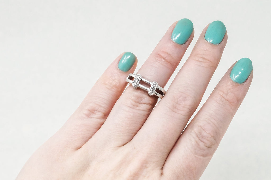 Vintage Cubic Zirconia High End Fashion Sterling Silver Ring - Sz 4.75