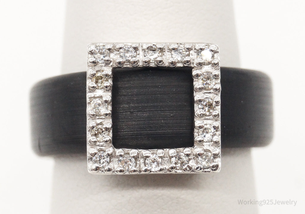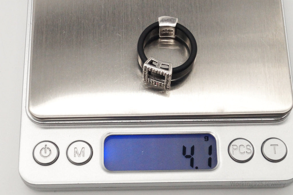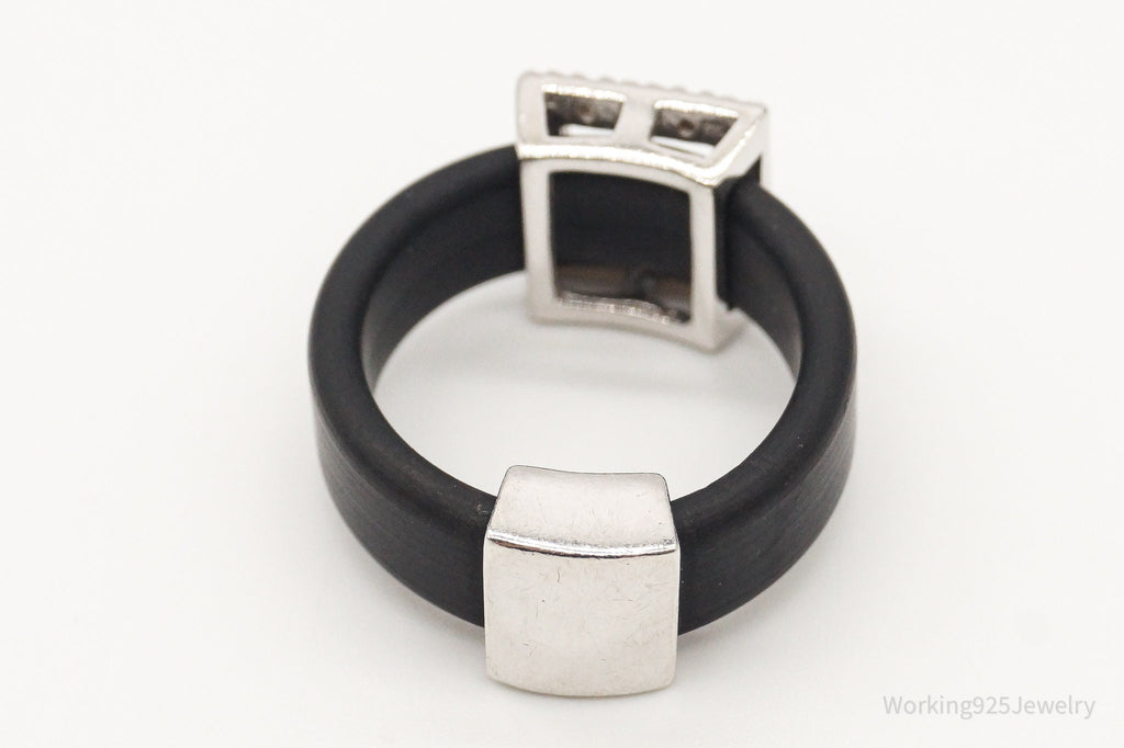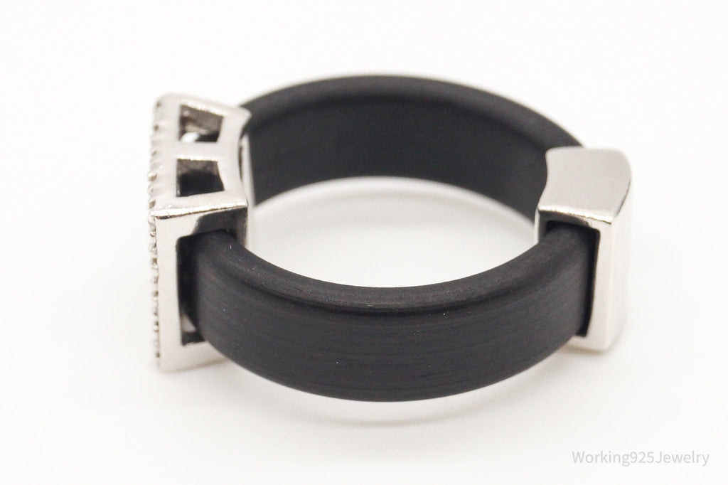 Vintage Cubic Zirconia Sterling Silver Black Rubber Ring SZ 7.25