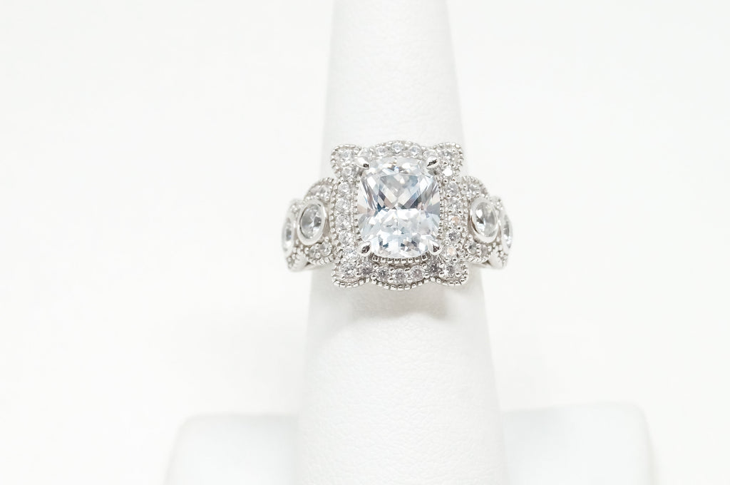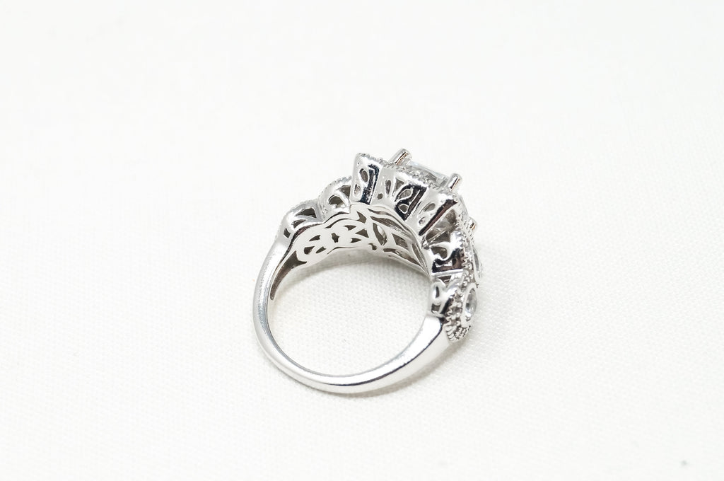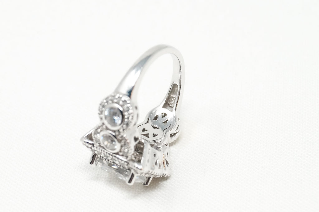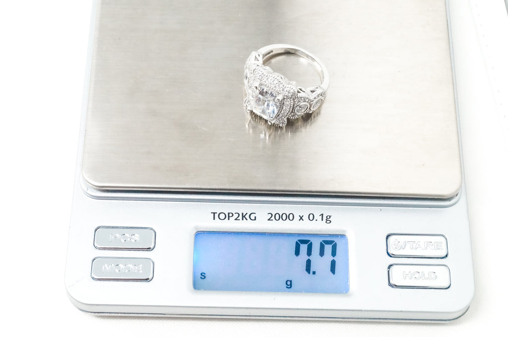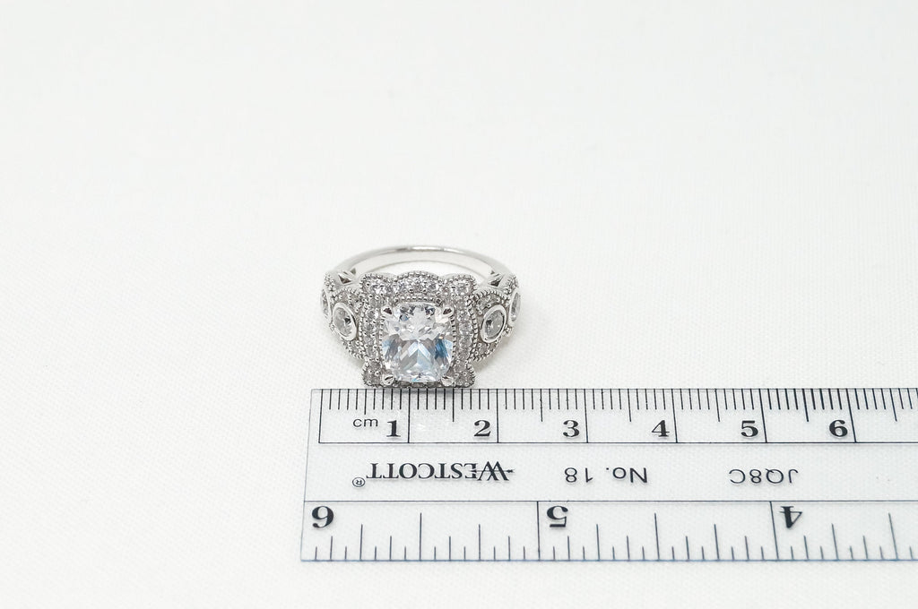 Vintage Cubic Zirconia Sterling Silver Statement Ring - Sz 6.5 -783460914