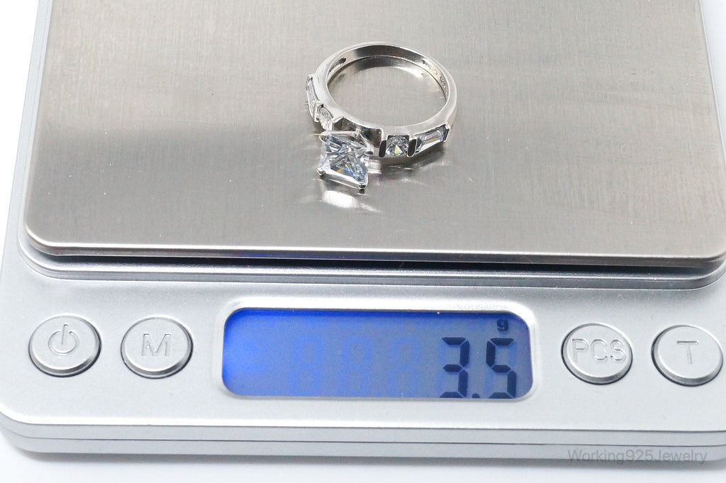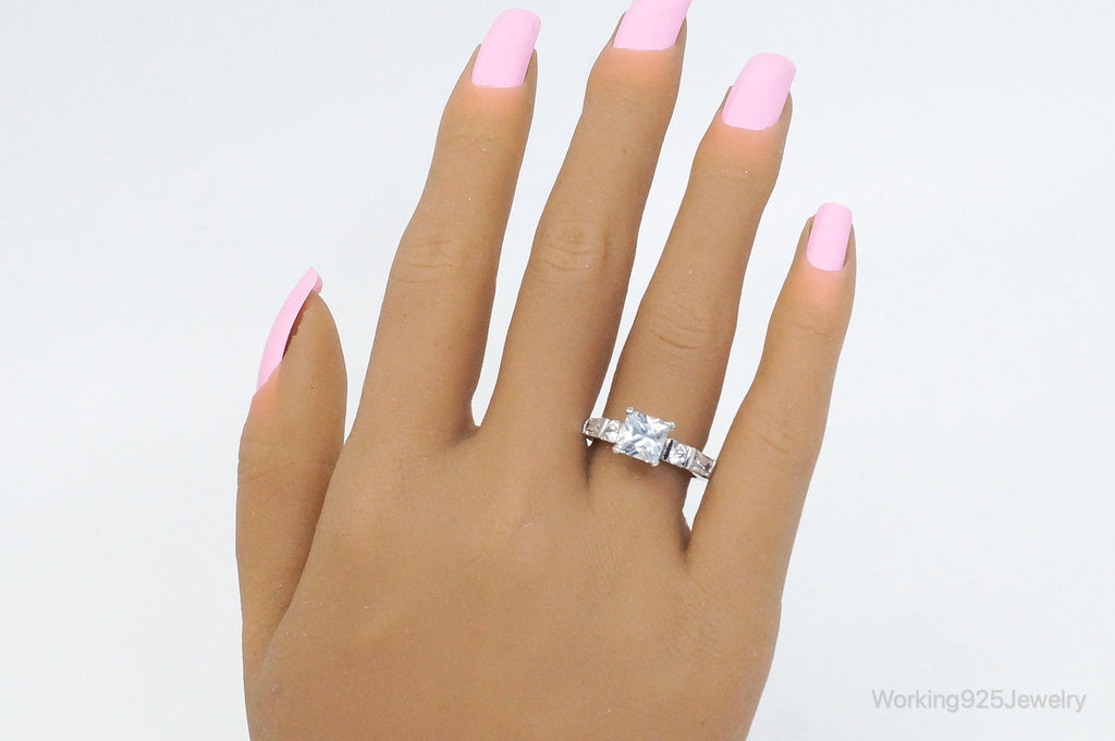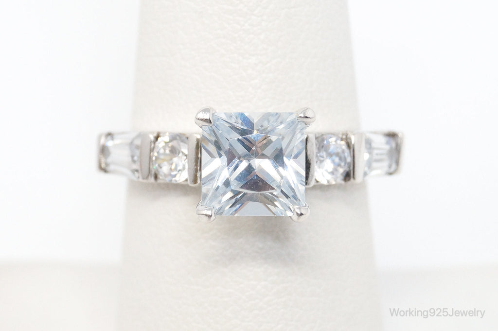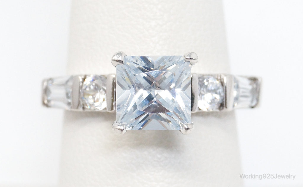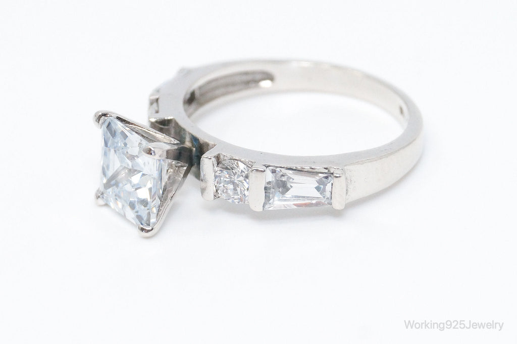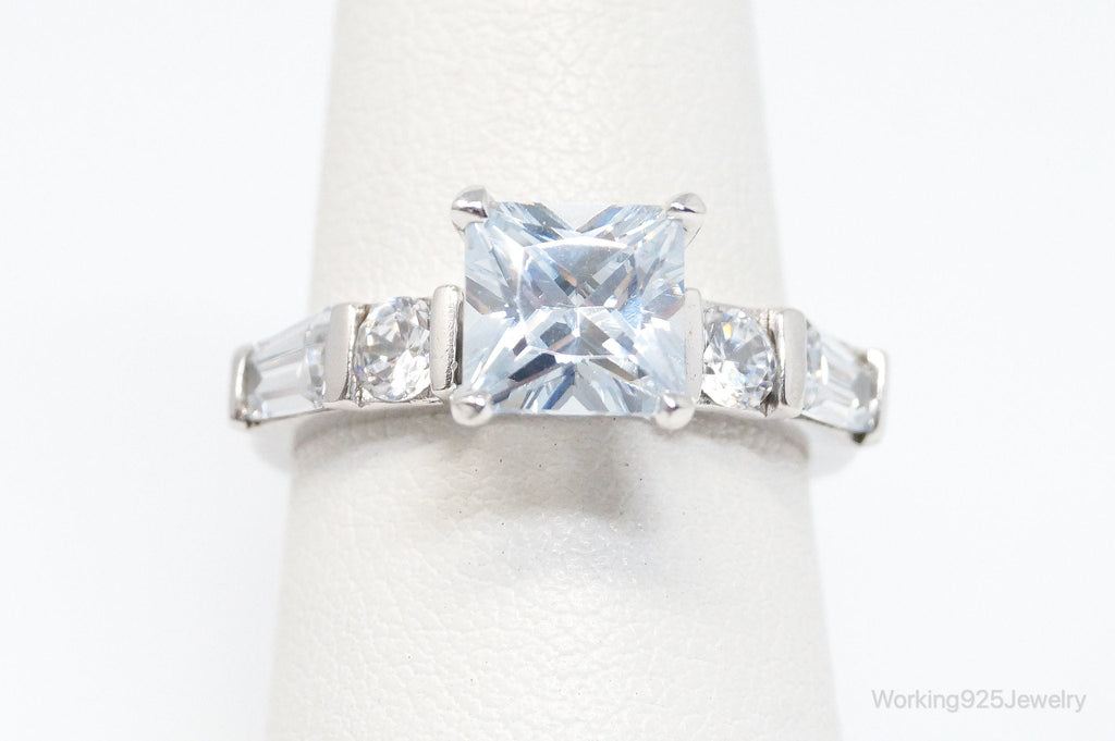 Vintage Cubic Zirconia Sterling Silver Statement Ring - SZ 7.25