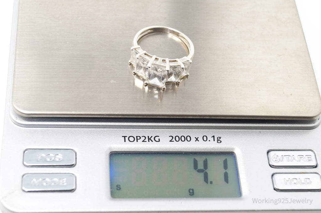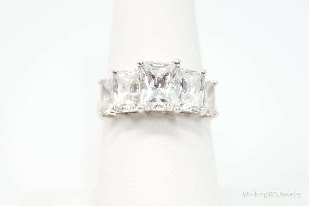 Vintage Cubic Zirconia Sterling Silver Statement Ring - Sz 7.5