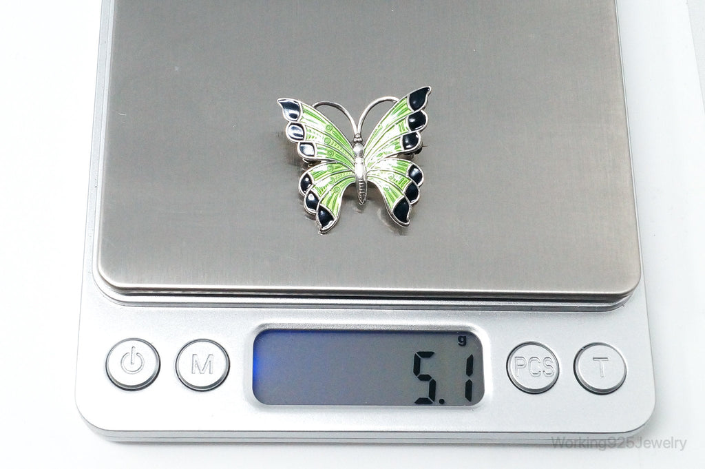 Vintage Danish Meka Butterfly Enamel Sterling Silver Pin Brooch