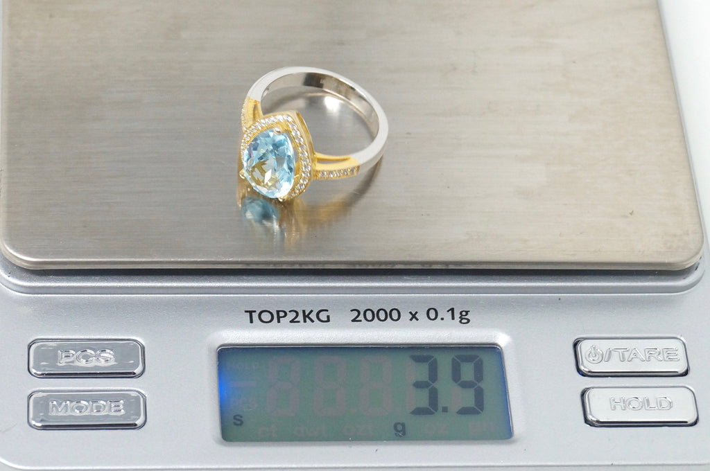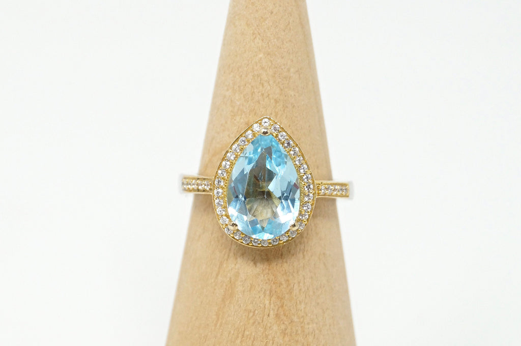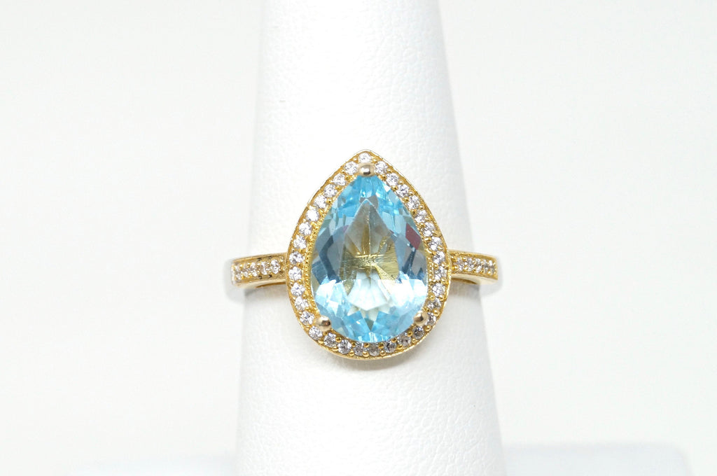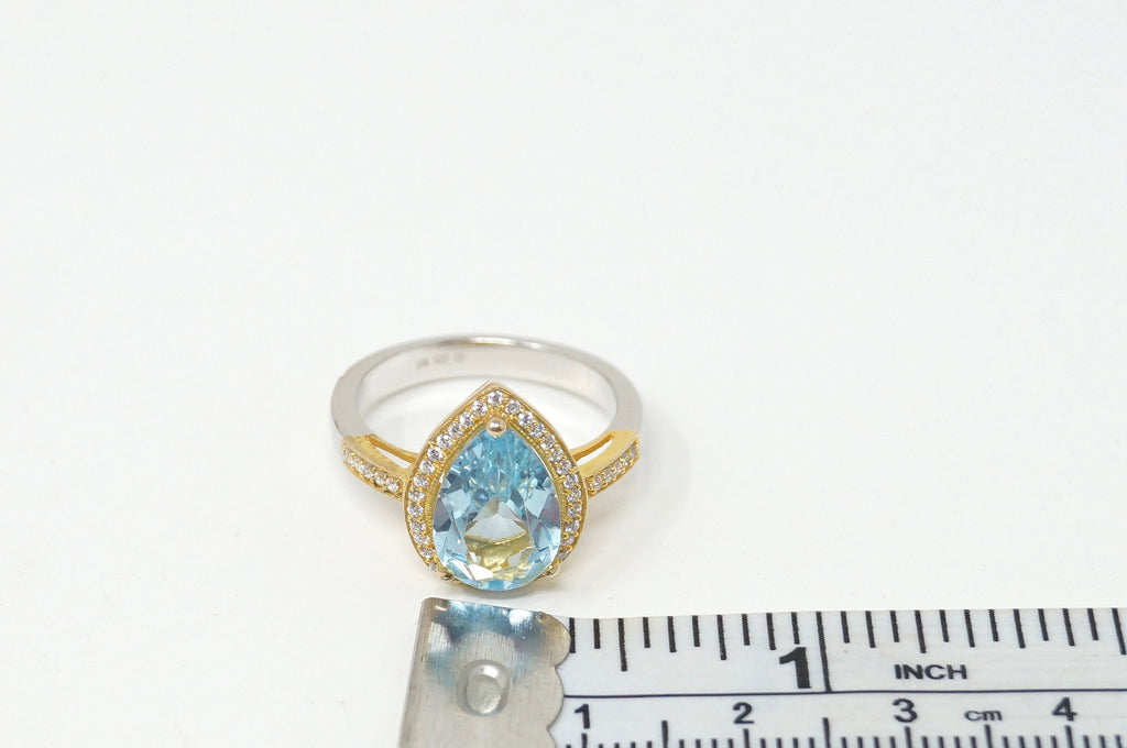 Vintage De Buman 18k Gold Genuine Sky Blue Topaz CZ Sterling Silver Ring Sz 6.75