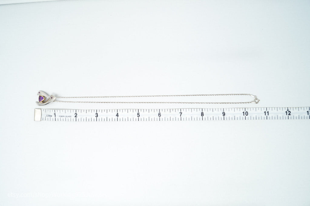 Vintage Designer 14K Gold Amethyst Ruby Art Deco Sterling Silver Necklace