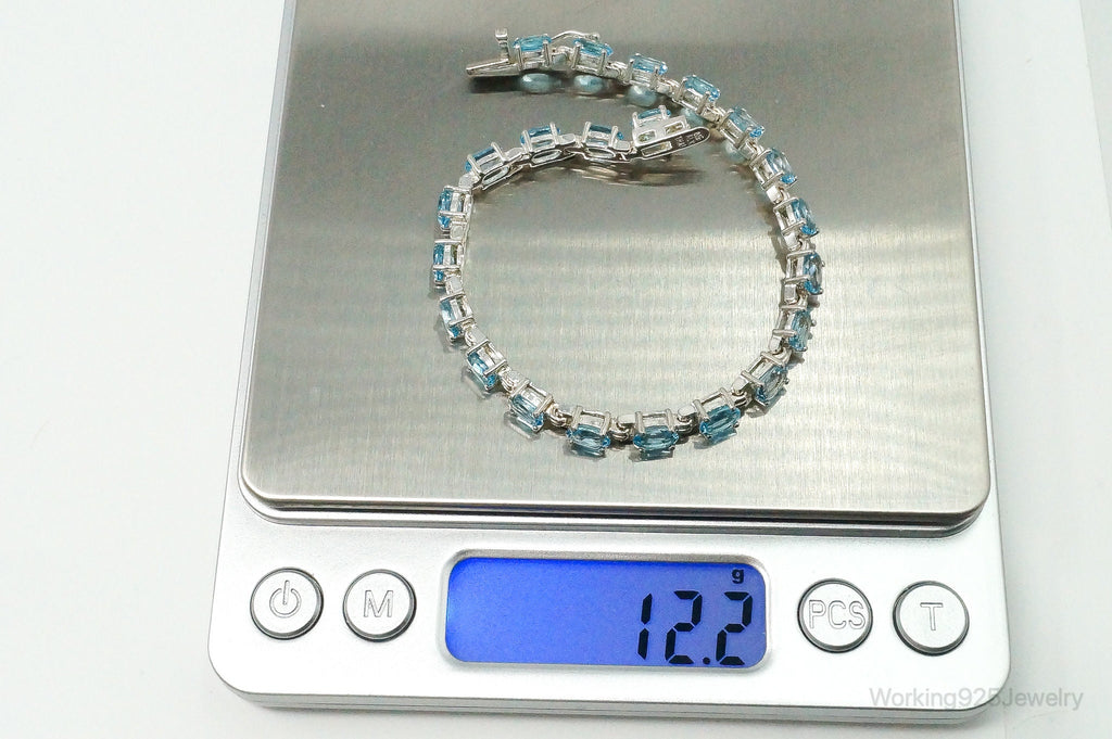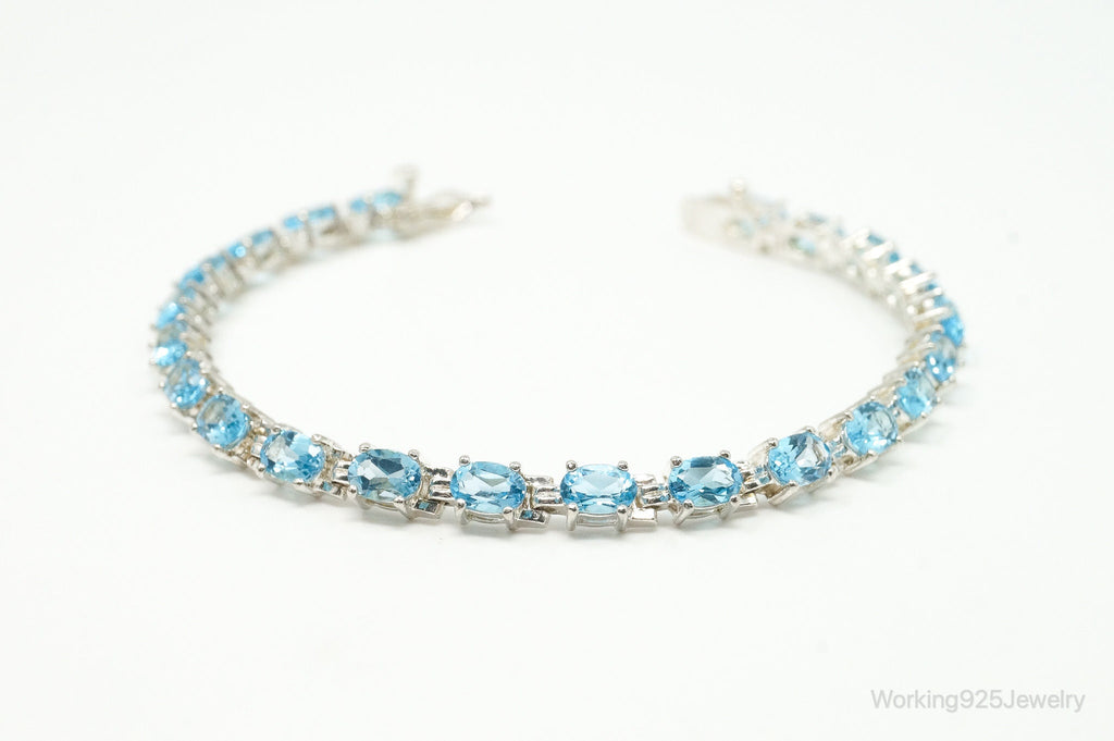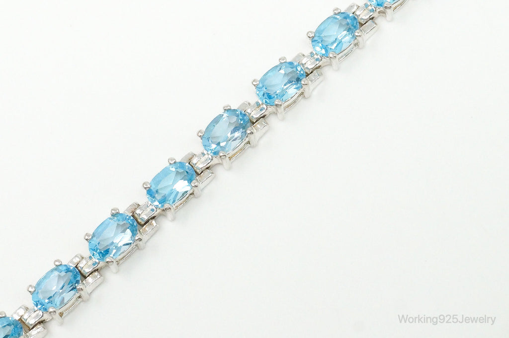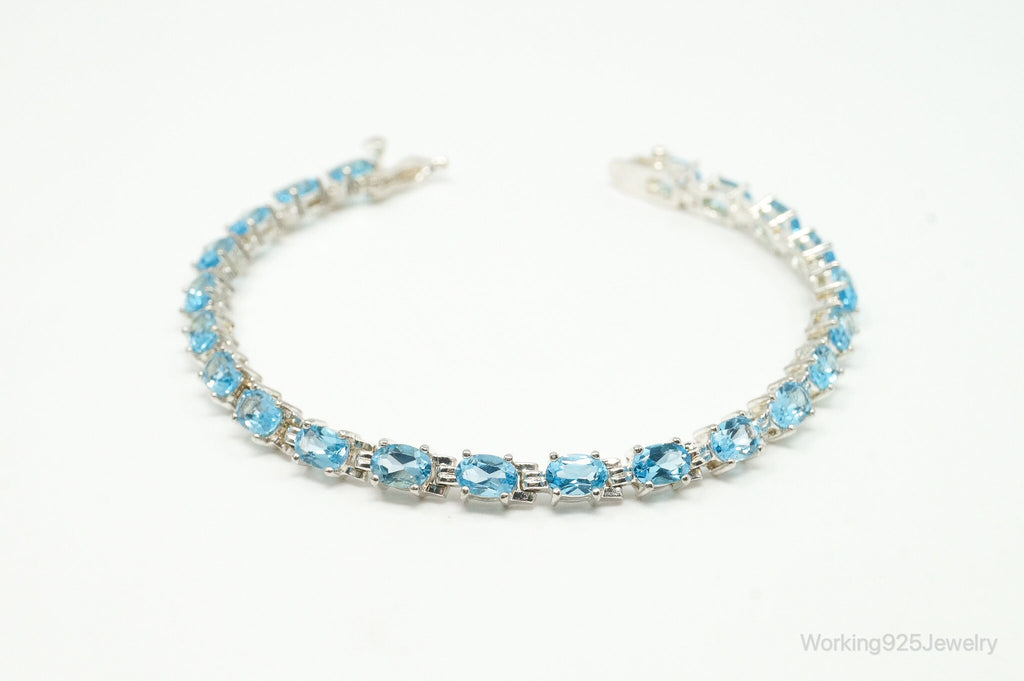 Vintage Designer ALX Blue Topaz Sterling Silver Tennis Bracelet