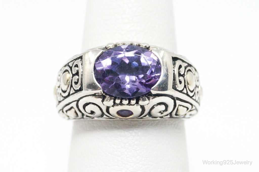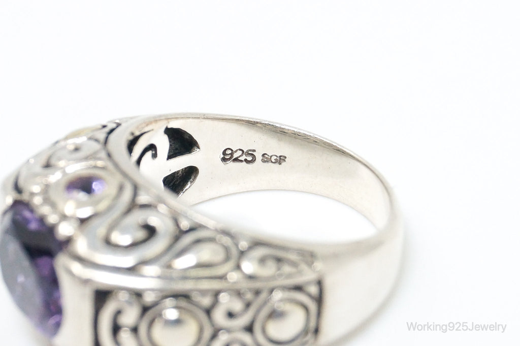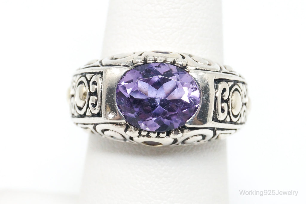 Vintage Designer Art Deco Large Amethyst Sterling Silver Ring - SZ 6.75