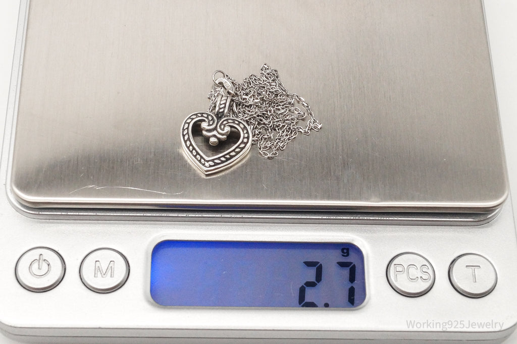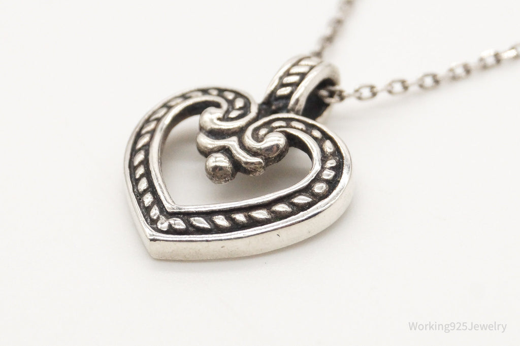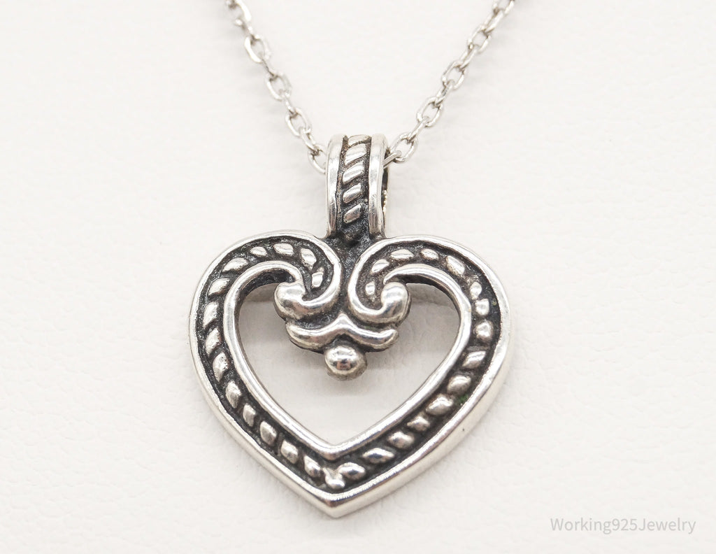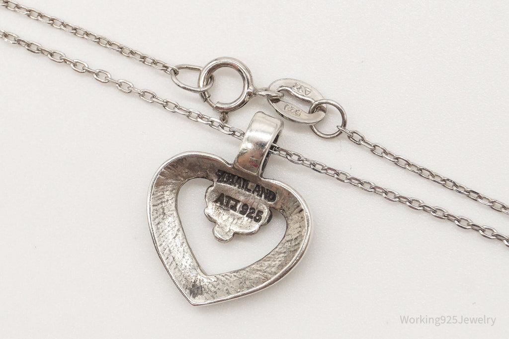 Vintage Designer ATI Art Deco Open Heart Sterling Silver Necklace