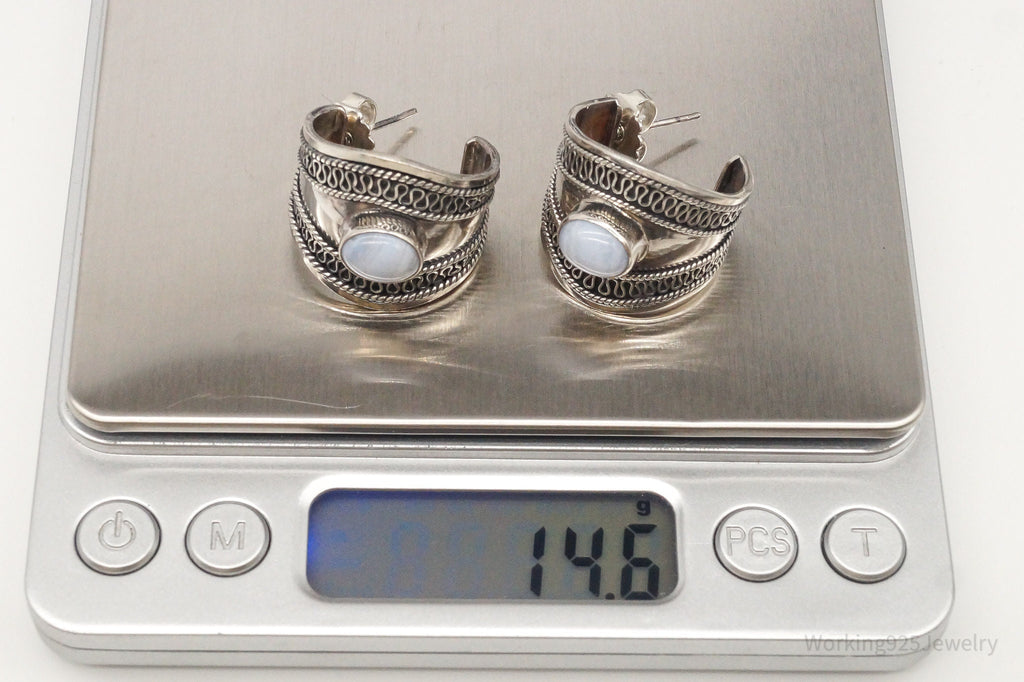 Vintage Designer BA Suarti Blue Lace Agate Sterling Silver Earrings