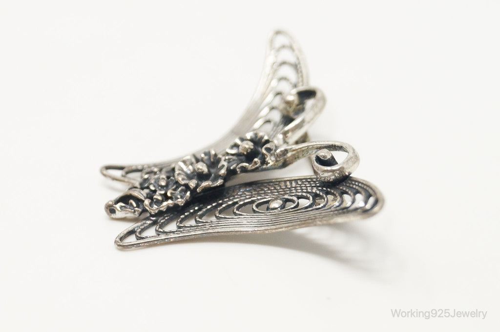 Vintage Designer Beau Filigree Butterfly Modern Sterling Silver Brooch Pin