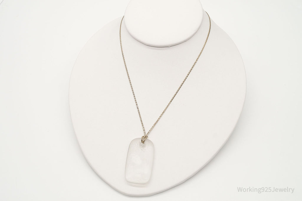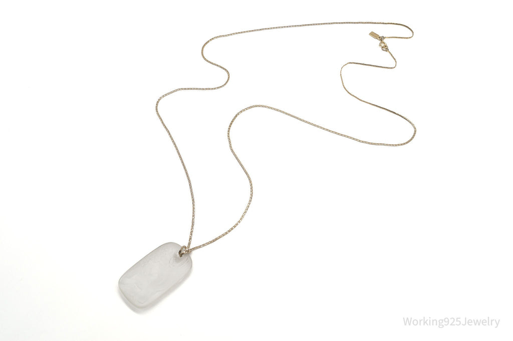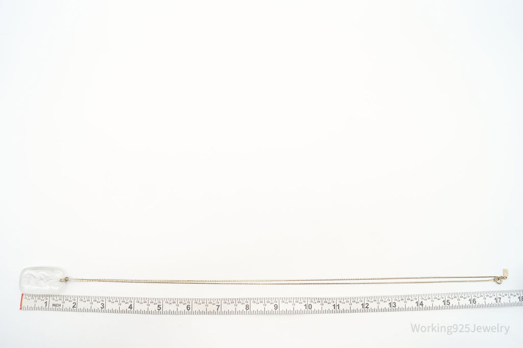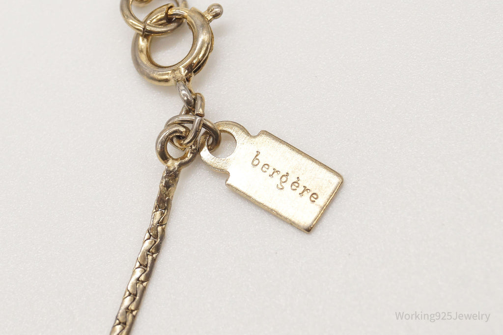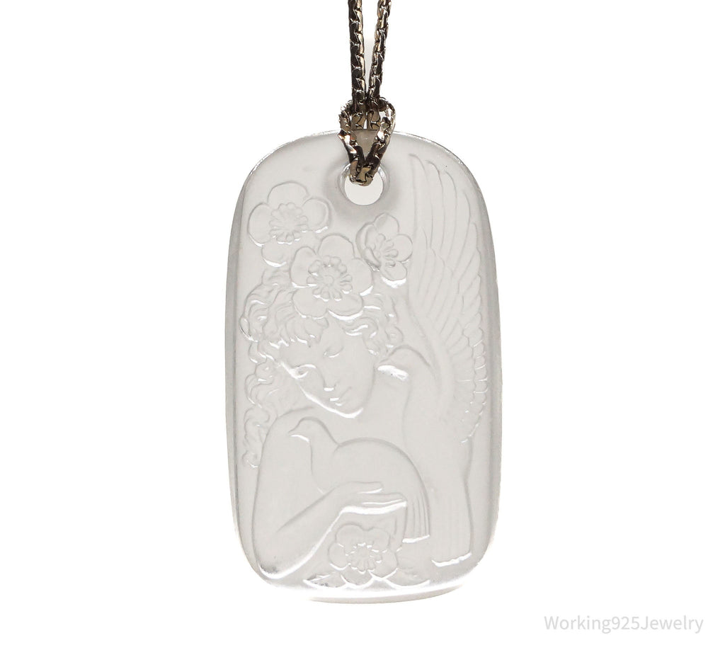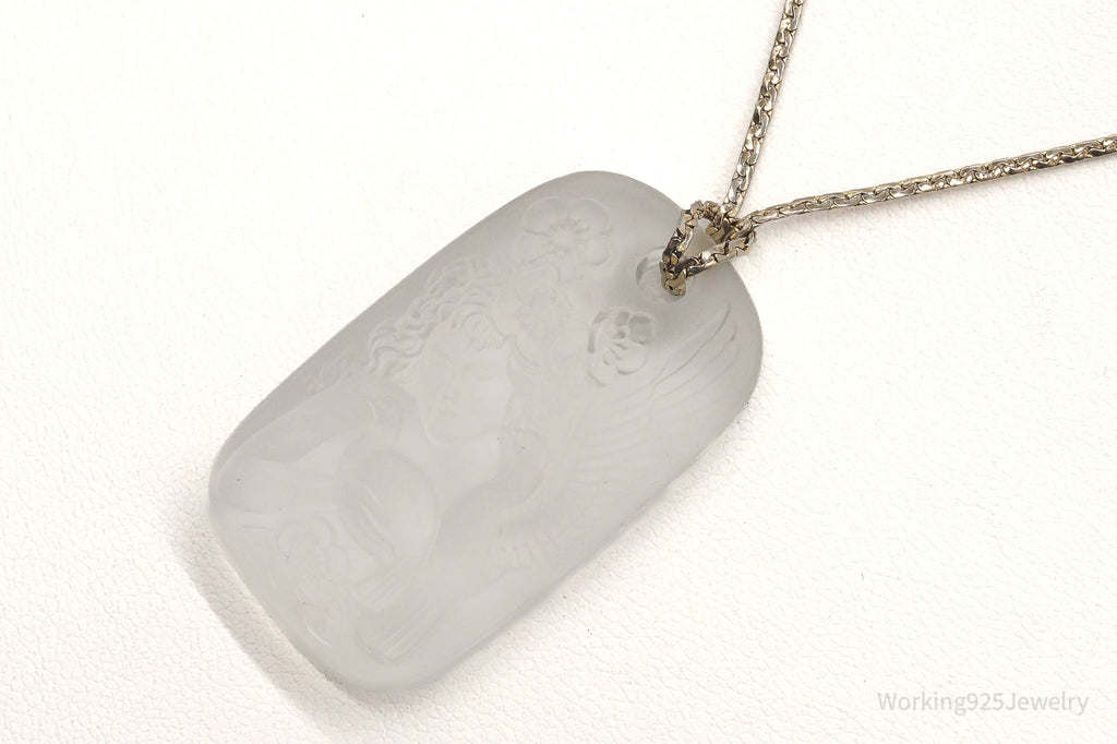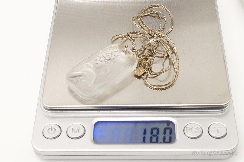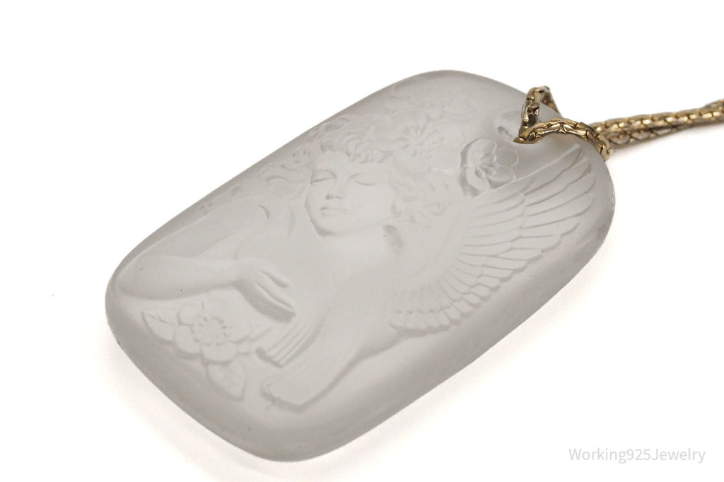 Vintage Designer Bergere Angel Cherub Glass Cameo Gold Tone Necklace