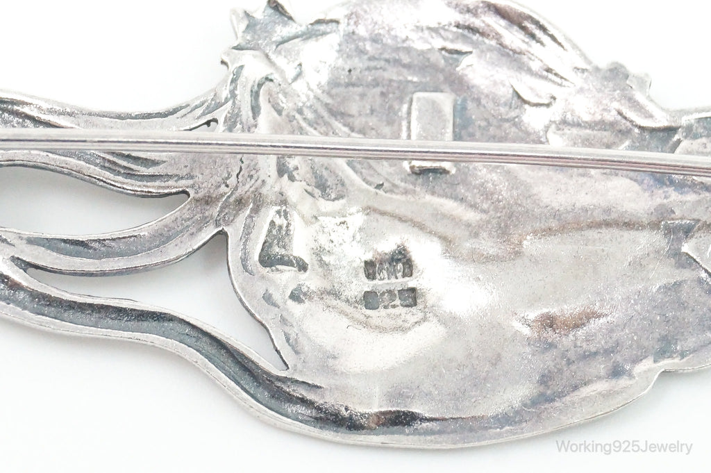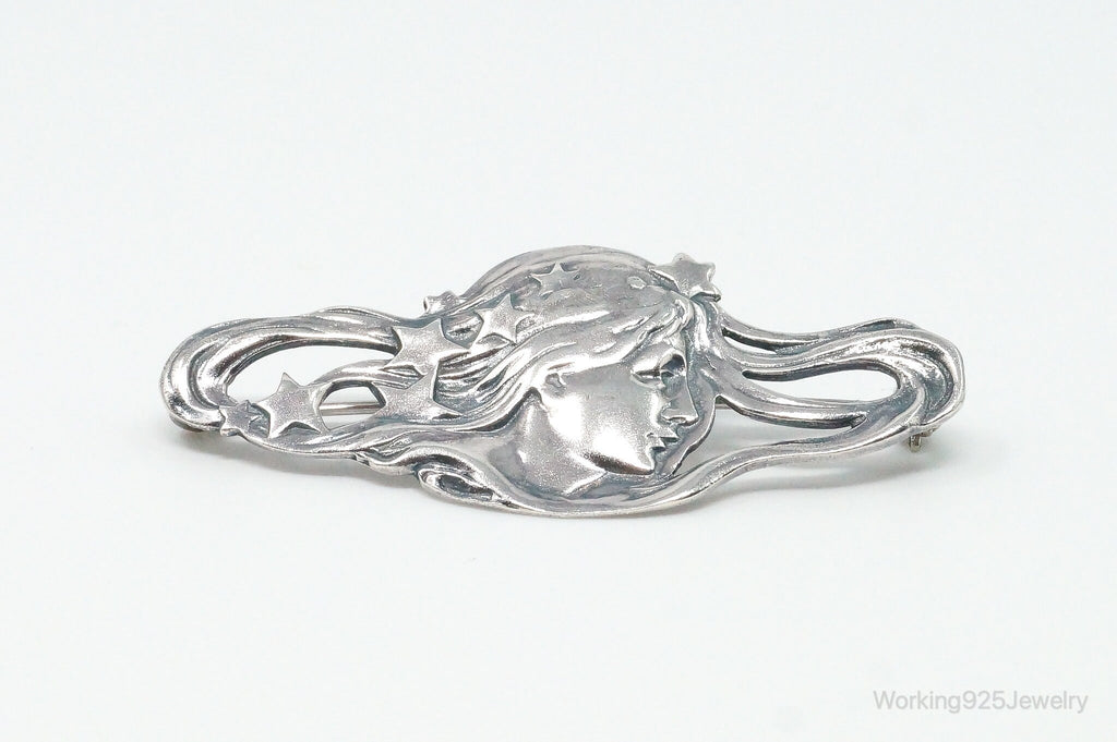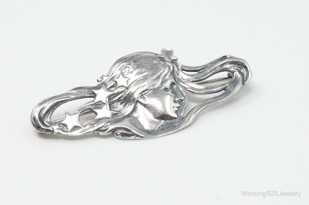 Vintage Designer BOMA Goddess Sterling Silver Brooch Pin