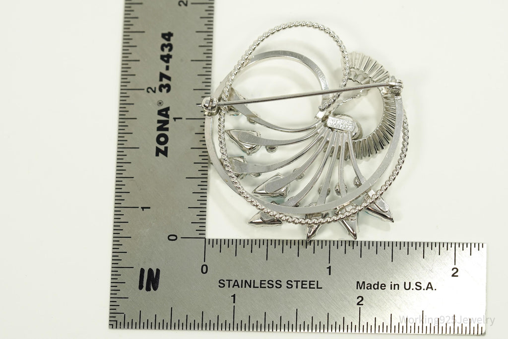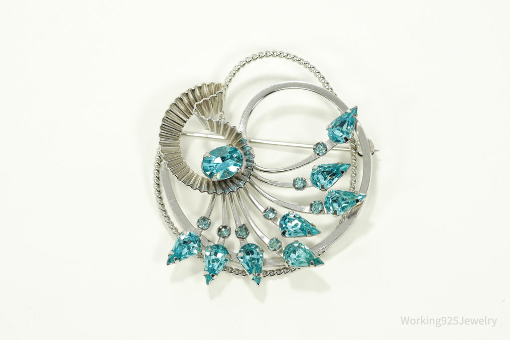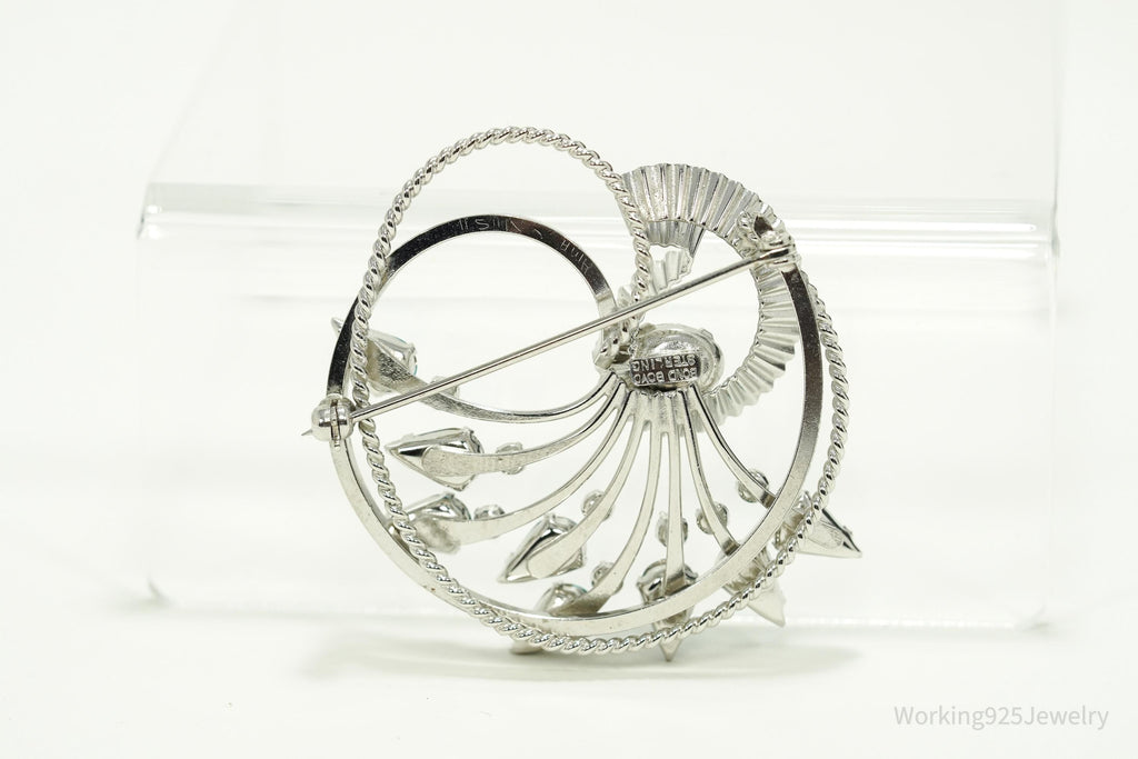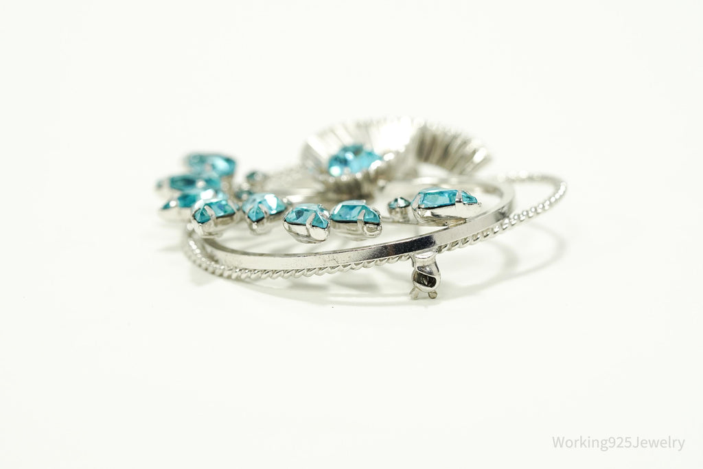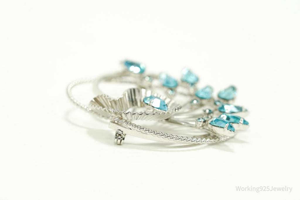 Vintage Designer BOND BOYD Blue Rhinestone Art Deco Sterling Silver Brooch Pin