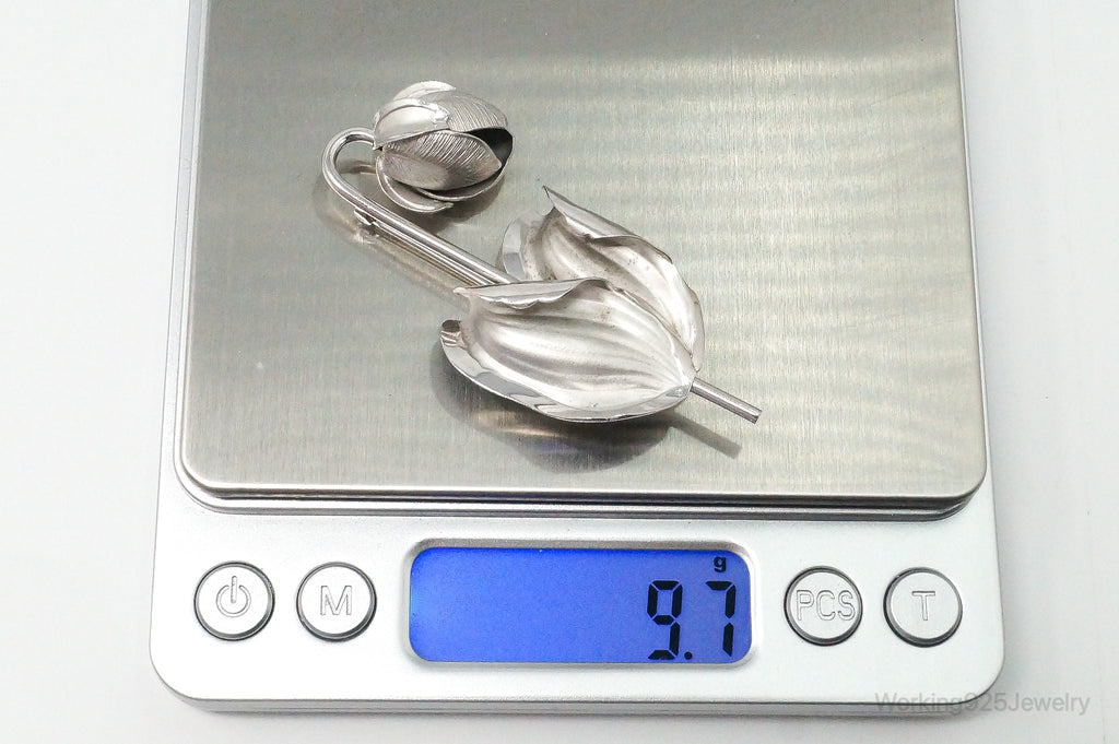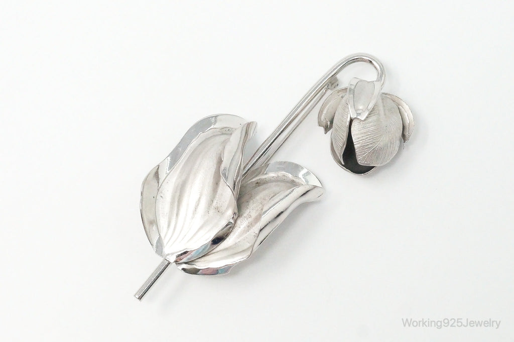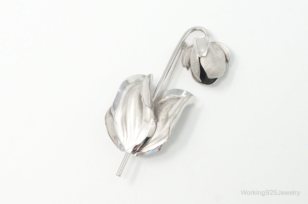 Vintage Designer BOND BOYD Flower Sterling Silver Brooch Pin