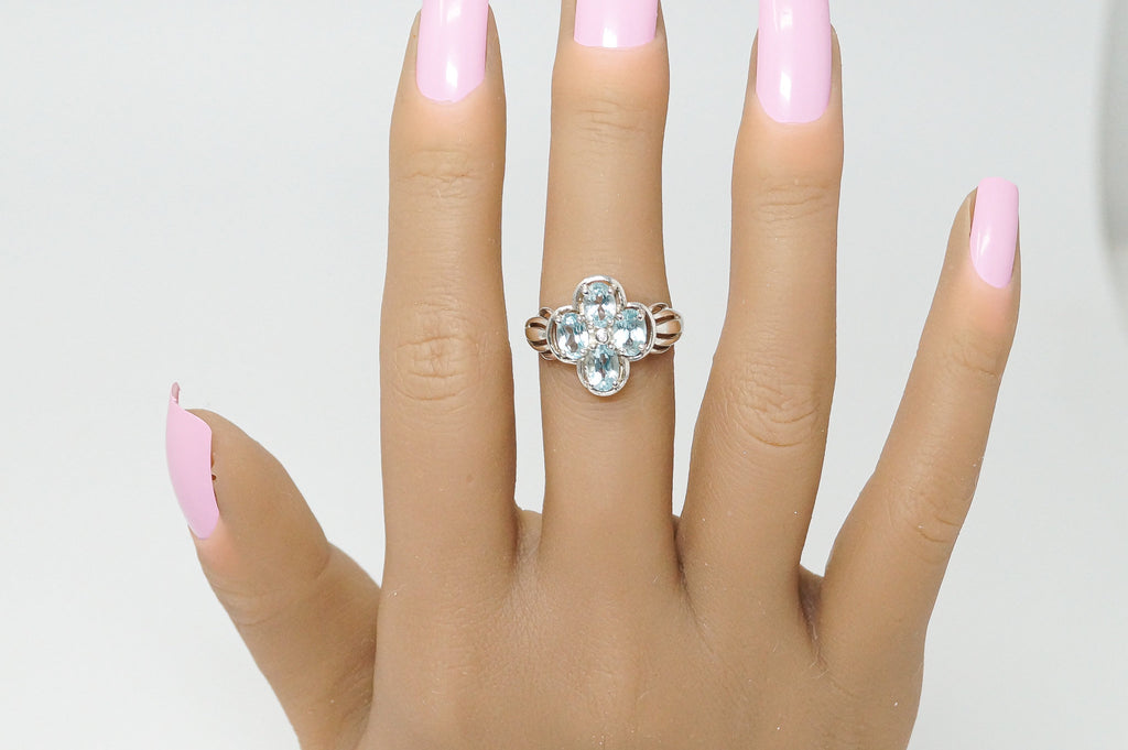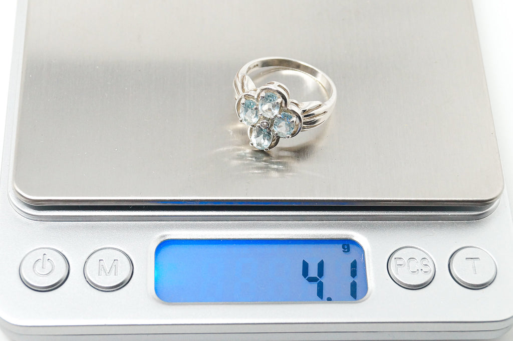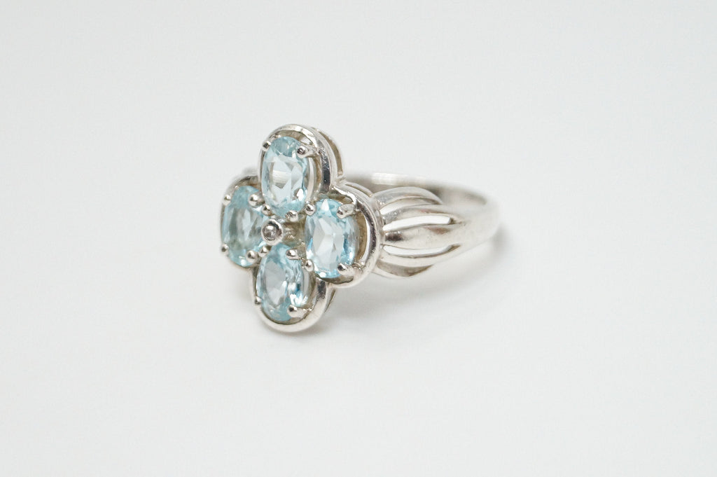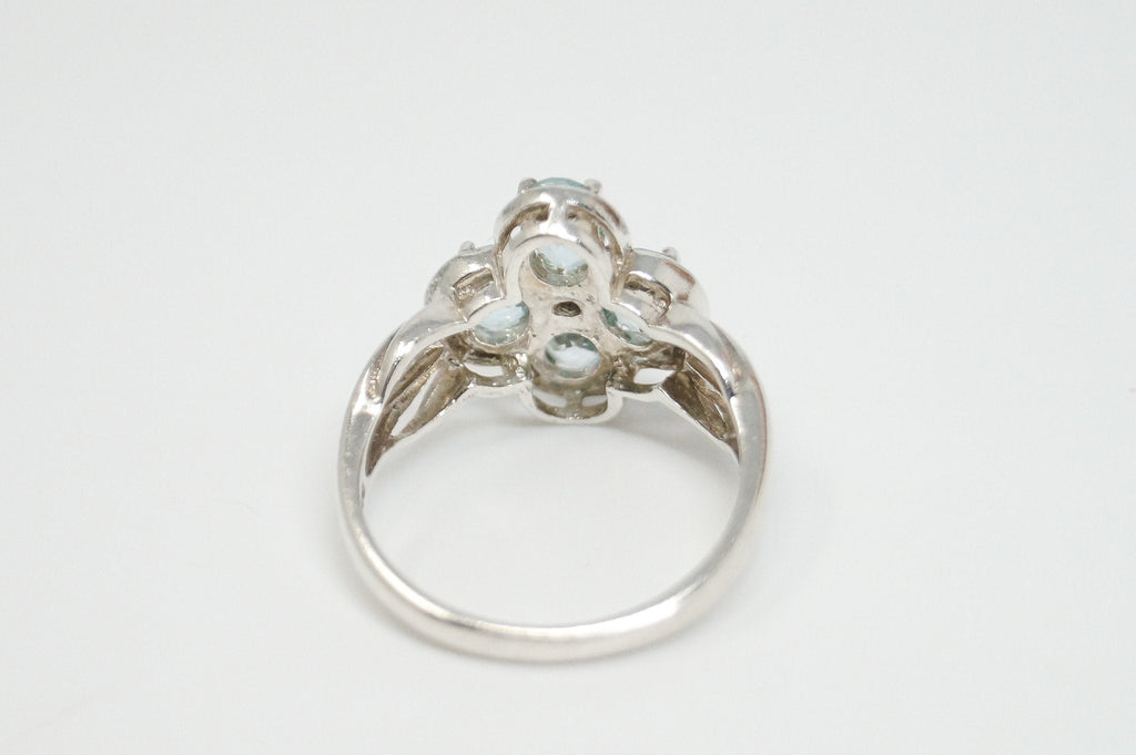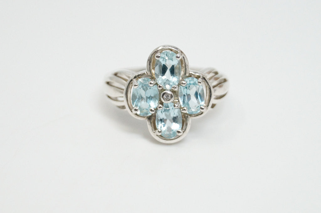 Vintage Designer CNA Blue Topaz Diamond Sterling Silver Ring - Sz 7.75