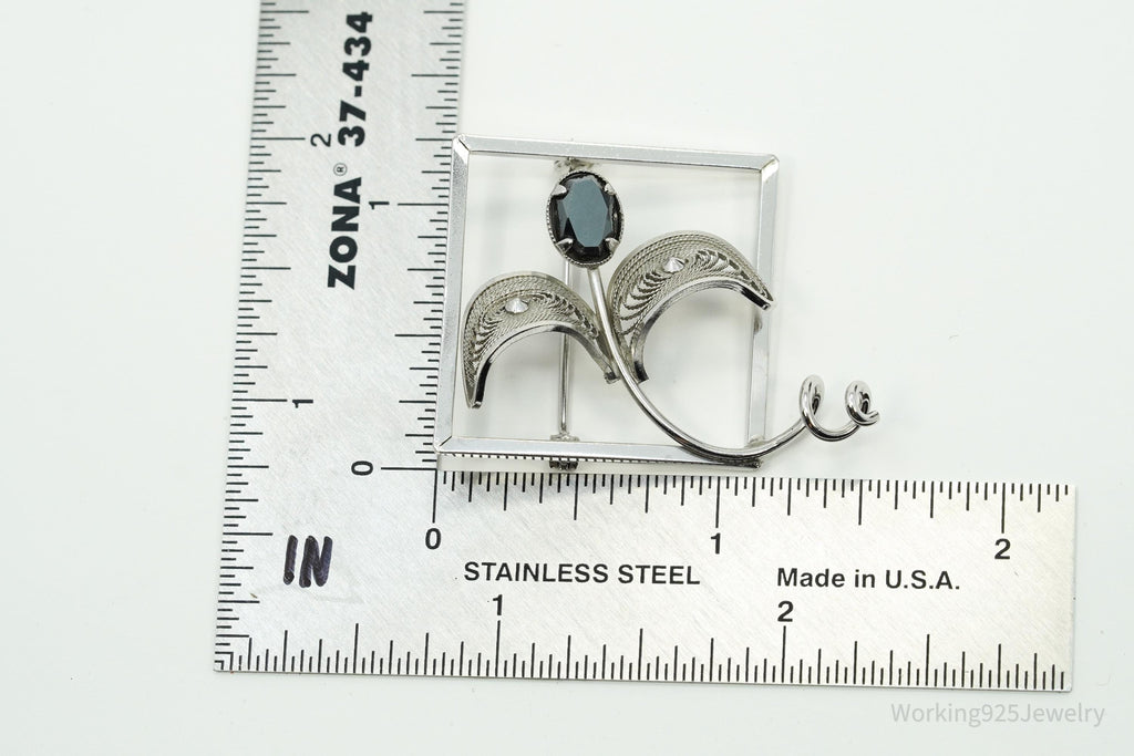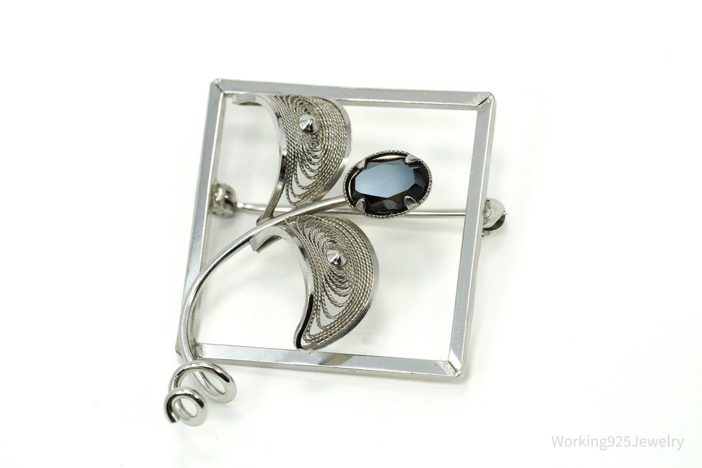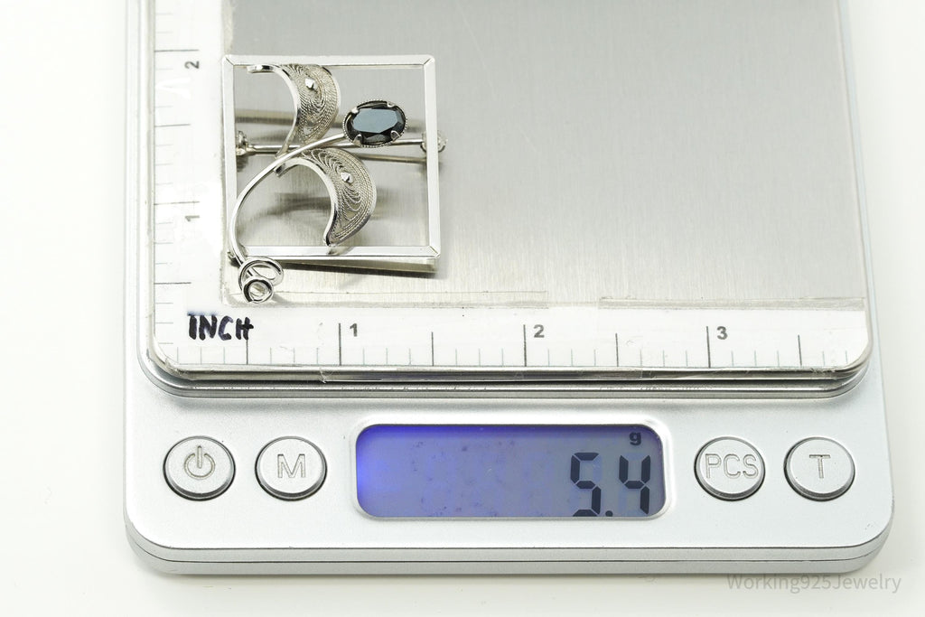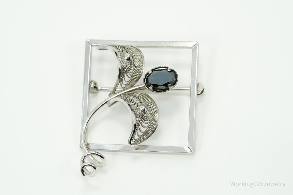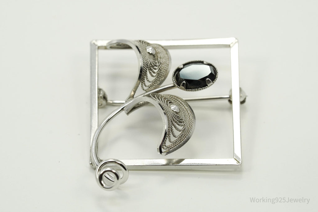 Vintage Designer CR Co Hematite Filigree Sterling Silver Brooch Pin