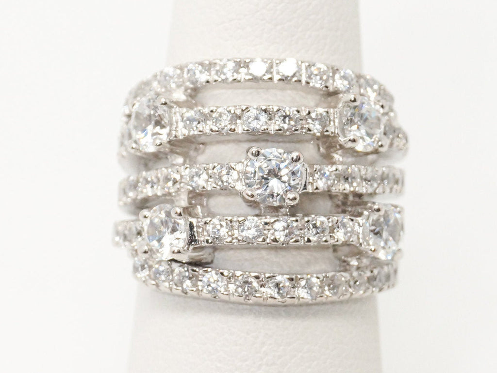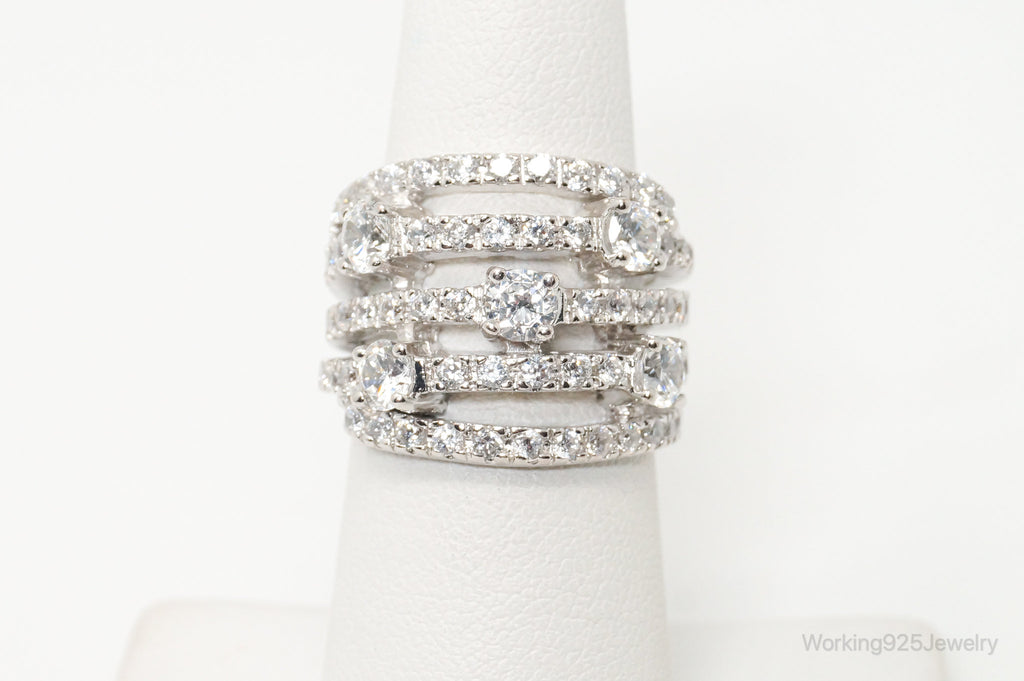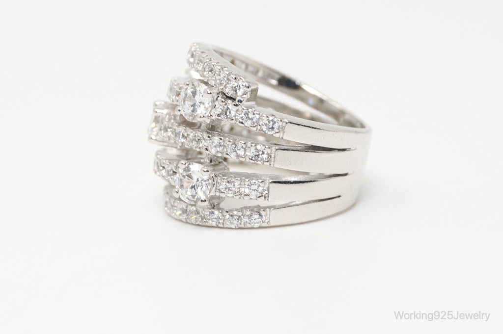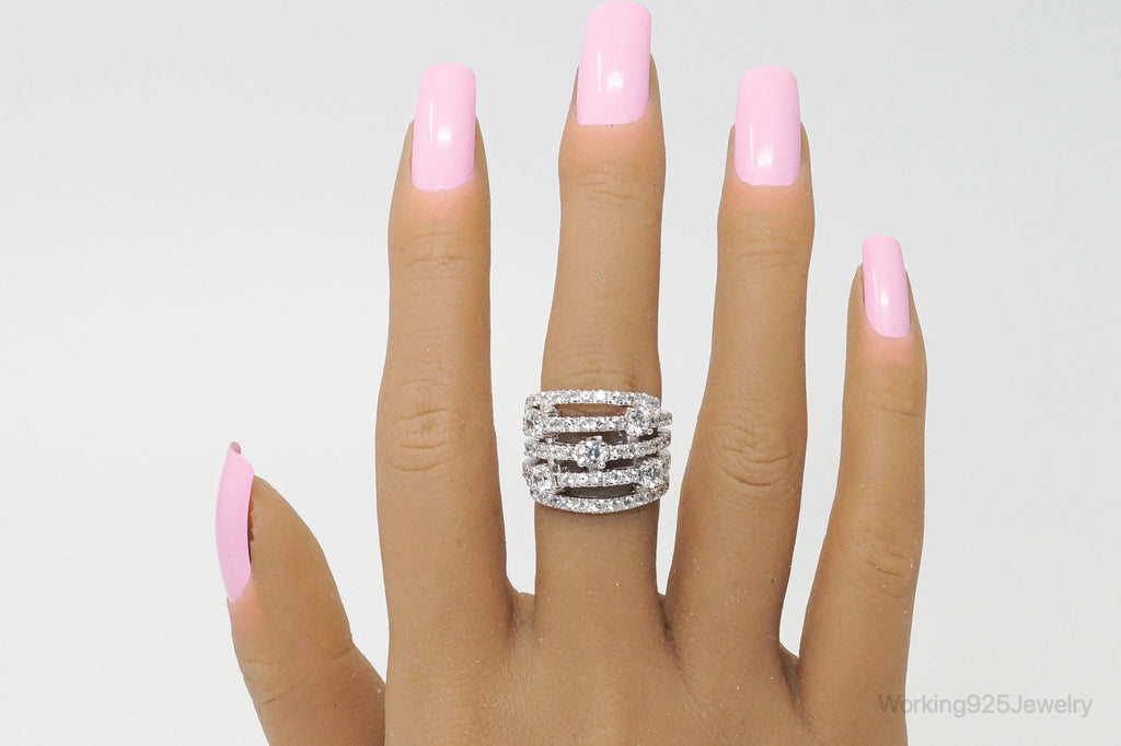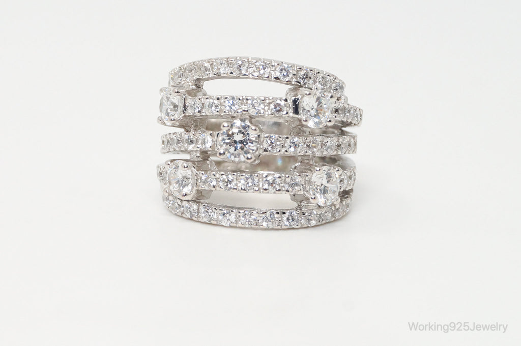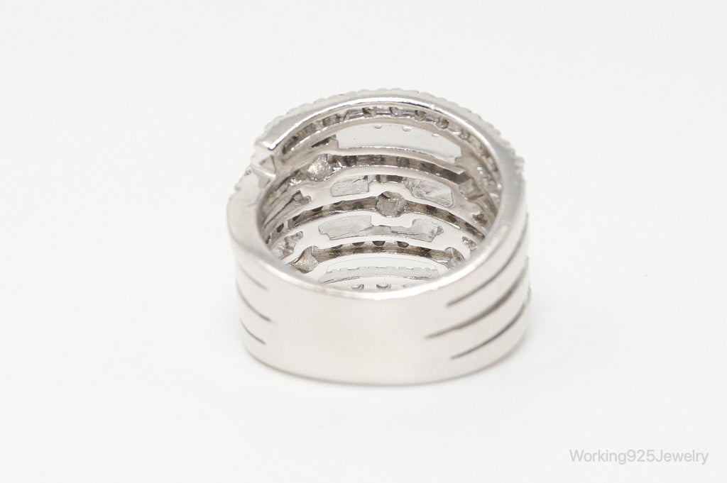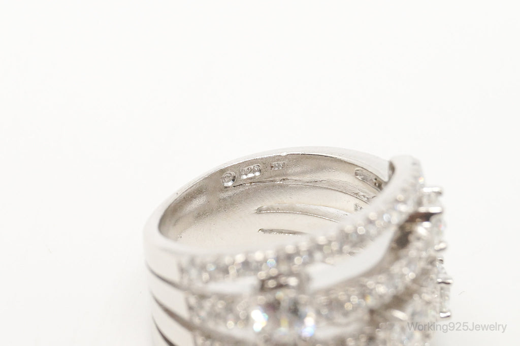 Vintage Designer Cubic Zirconia Statement Ring Sterling Silver - SZ 6.25