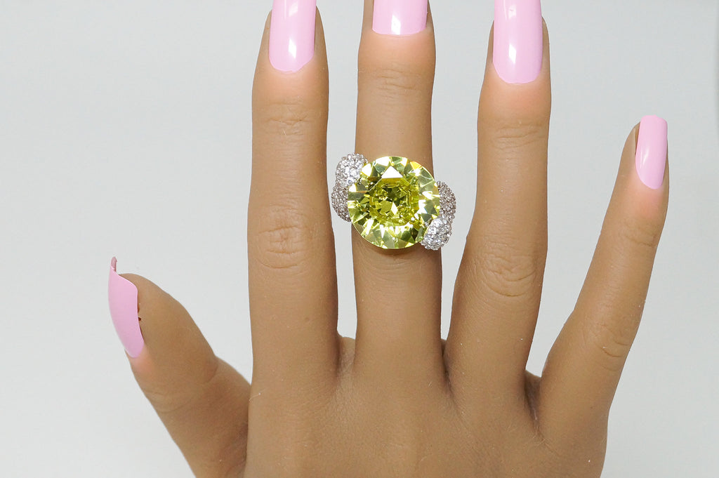 Vintage Designer CWE Art Deco Peridot CZ Sterling Silver Statement Ring - Sz 7