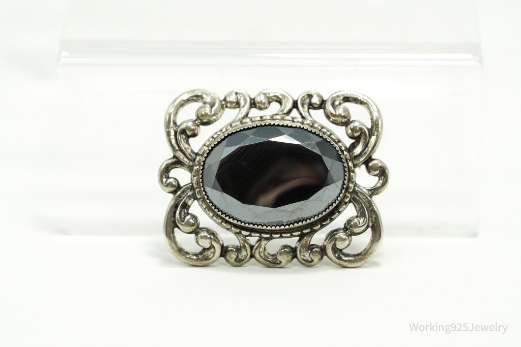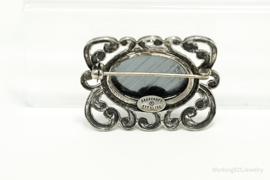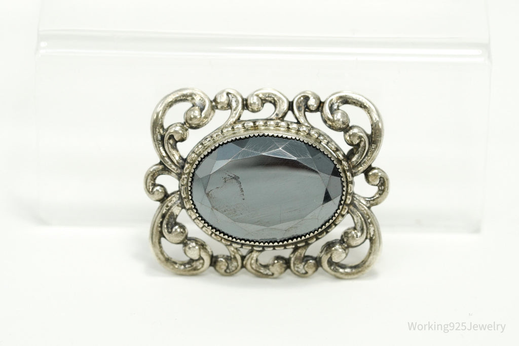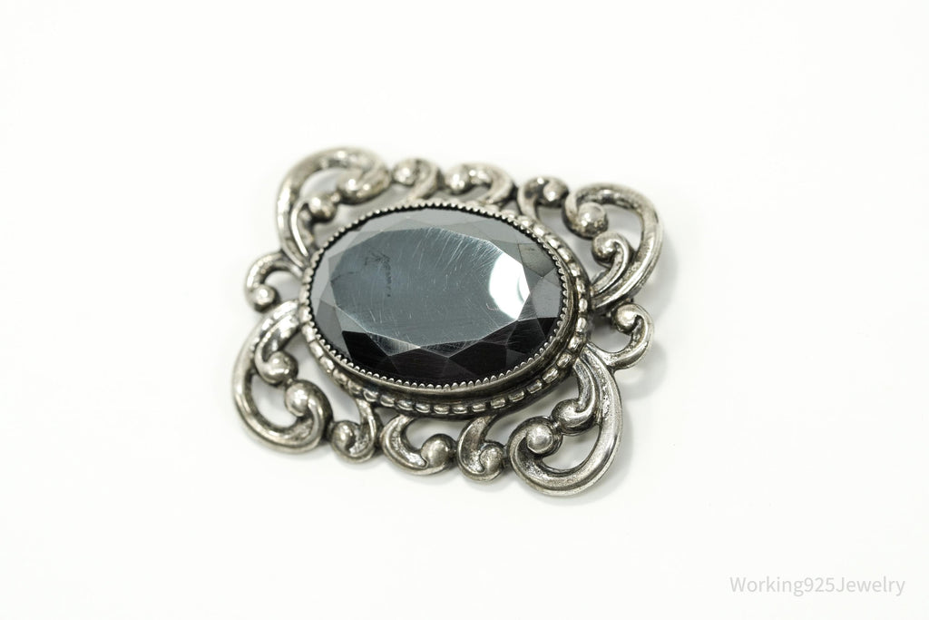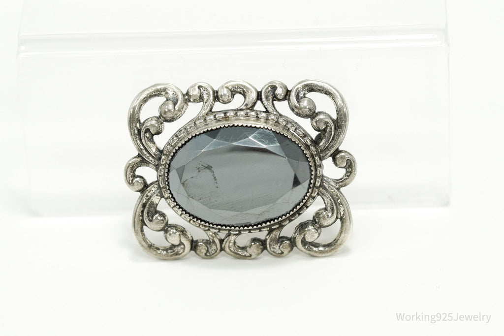 Vintage Designer Danecraft Hematite Ornate Sterling Silver Brooch Pin