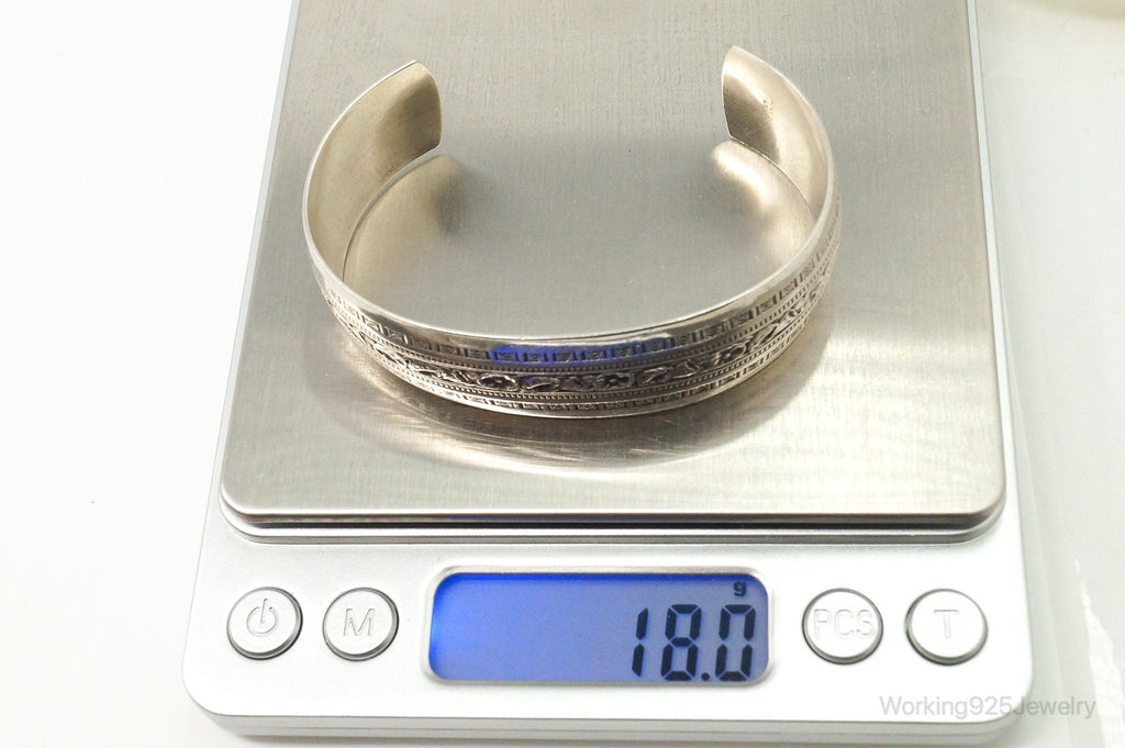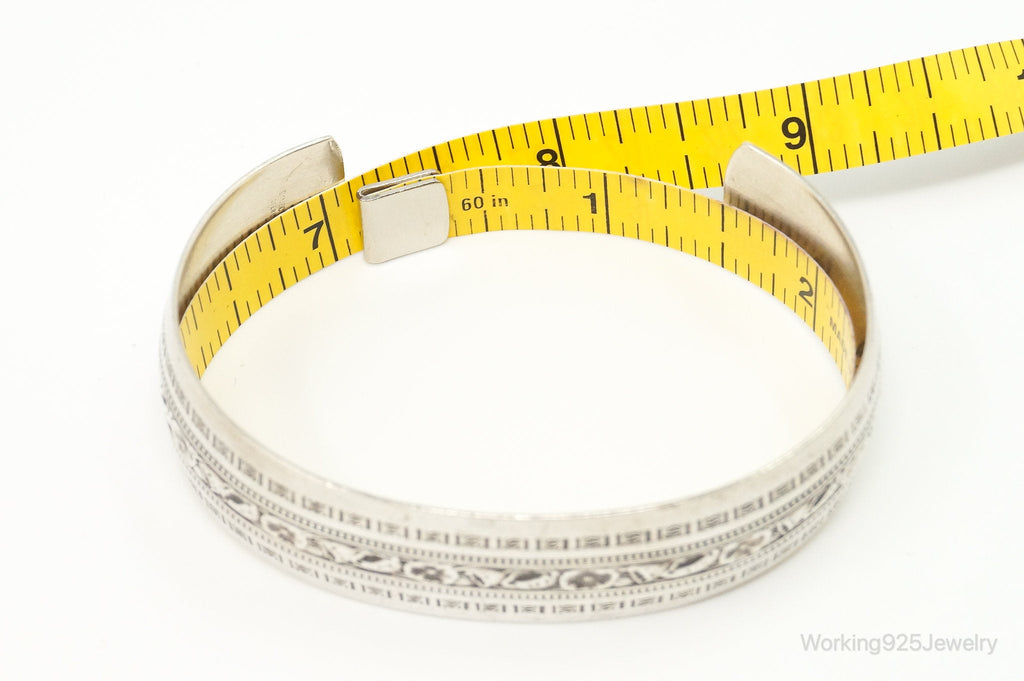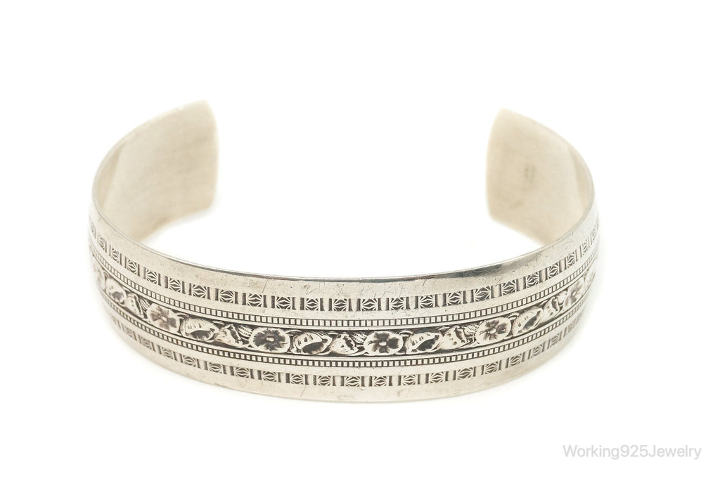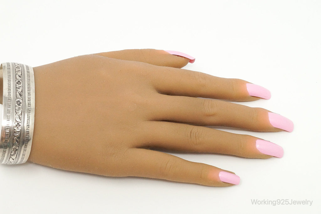 Vintage Designer Danecraft Sterling Silver Floral Wide Cuff Bracelet
