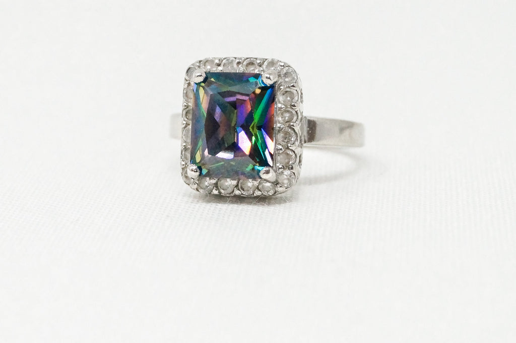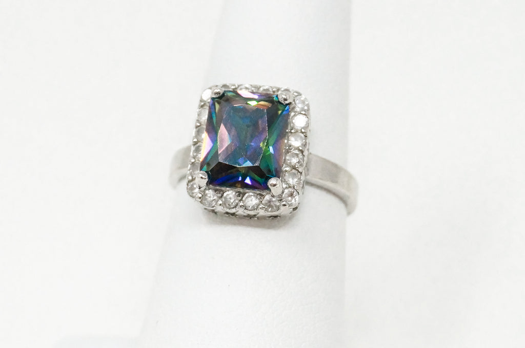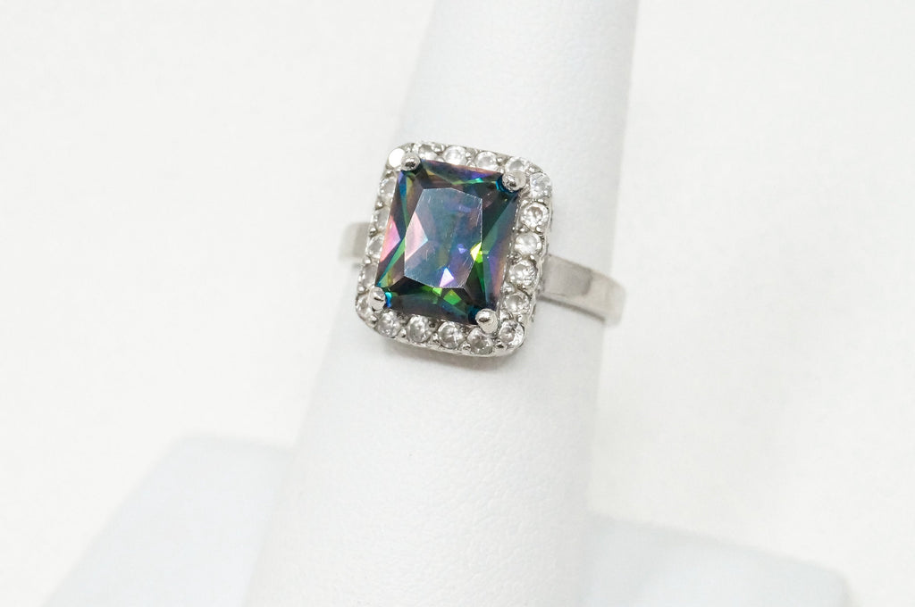 Vintage Designer DBJ Mystic Topaz Cubic Zirconia Sterling Silver Ring - Sz 6.75